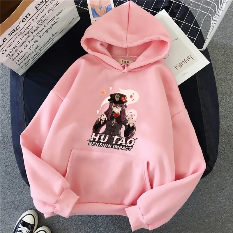 Толстовка с капюшоном Genshin Impact Kawaii, эстетичная свободная одежда с карманами Ху Тао, одежда унисекс, Повседневная Уличная одежда, женские свитшоты