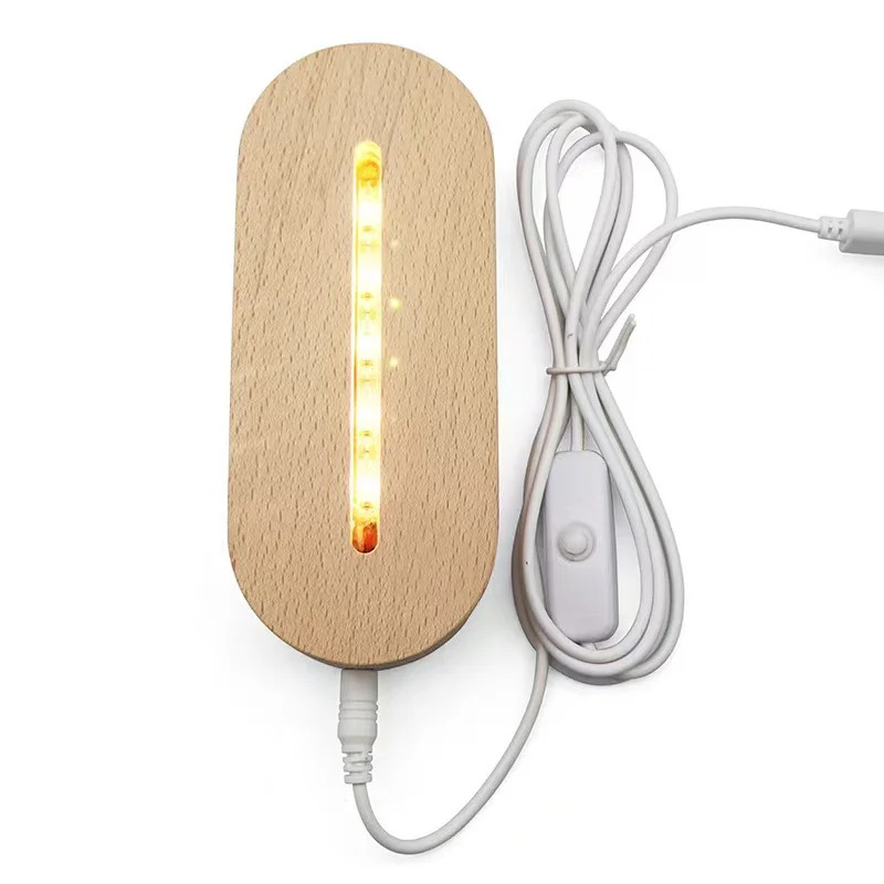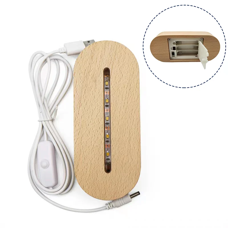 Овальный светодиодный светильник из твердой древесины и акрила, питание от USB, питание от батарейки AAA, деревянная осветительная стойка для акриловой иллюзии, ночсветильник 3D