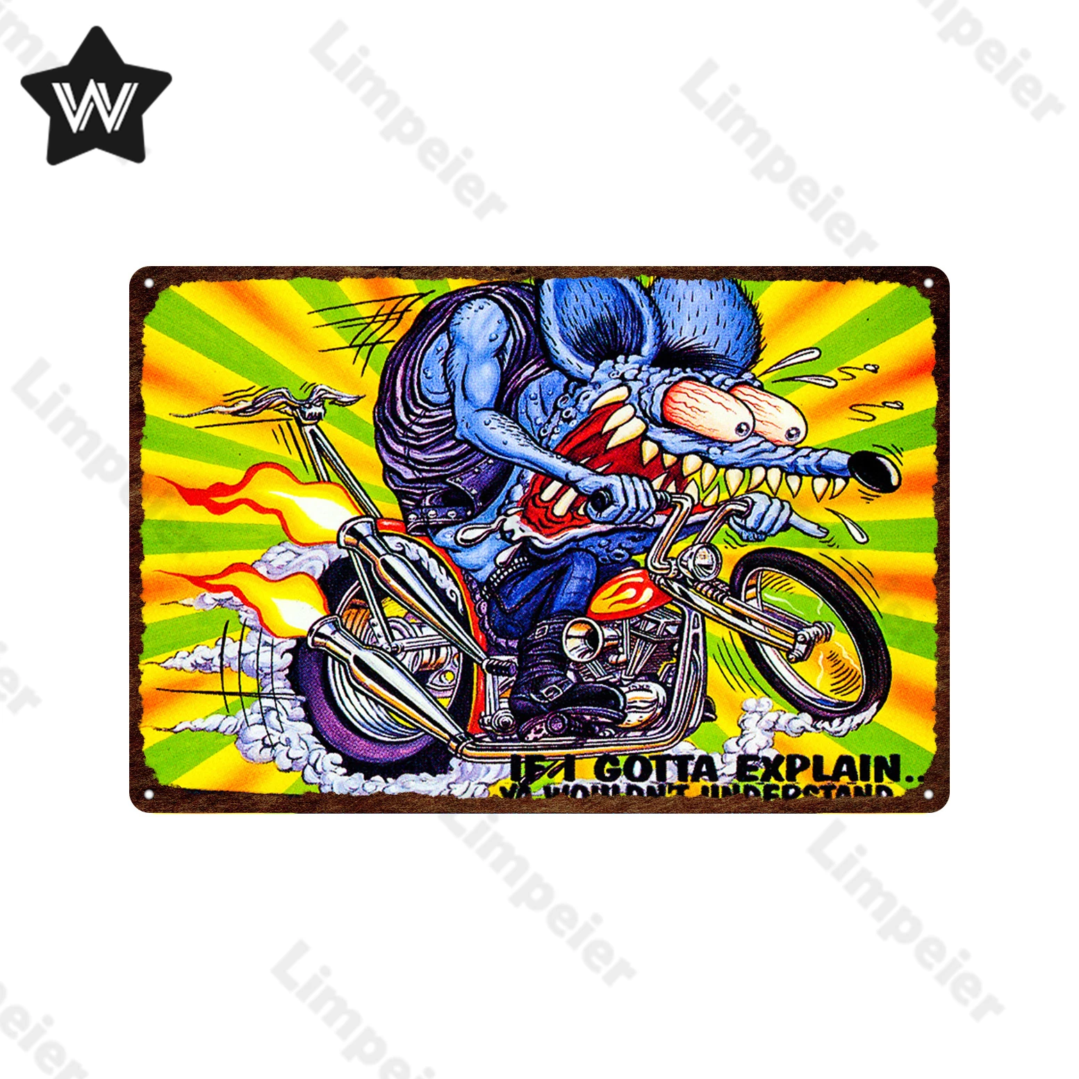 Винтажная Крыса Fink металлический знак потертая Модифицированная Автомобильная Наклейка на стену металлическая пластина Ретро стиль Оловянная пластина металлическая пластина мужская пещера декор для клуба