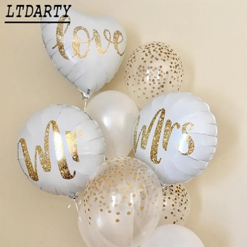 18-дюймовые круглые белые Золотые напечатанные в горошек Mr Mrs LOVE фольгированный шар Свадебные Воздушные шары для Дня Святого Валентина