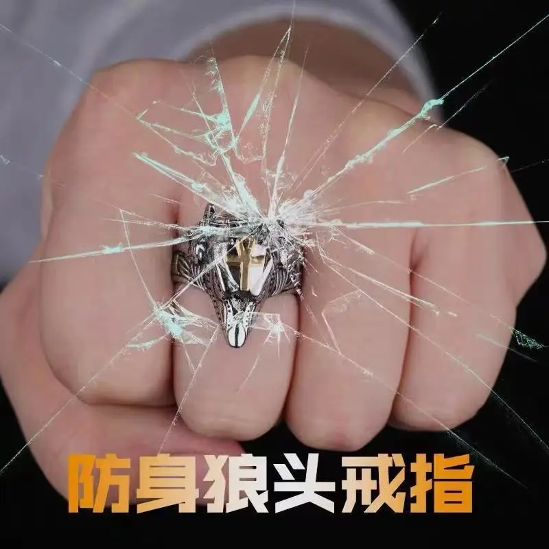 Скрытое оружие для самообороны для мужчин и женщин, Волчья Голова для самообороны, кольцо Анубиса, уличная Экипировка, мужское оружие t, высокотехнологичная самооборона