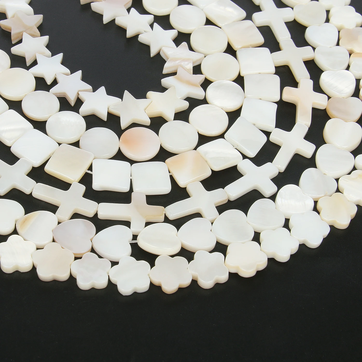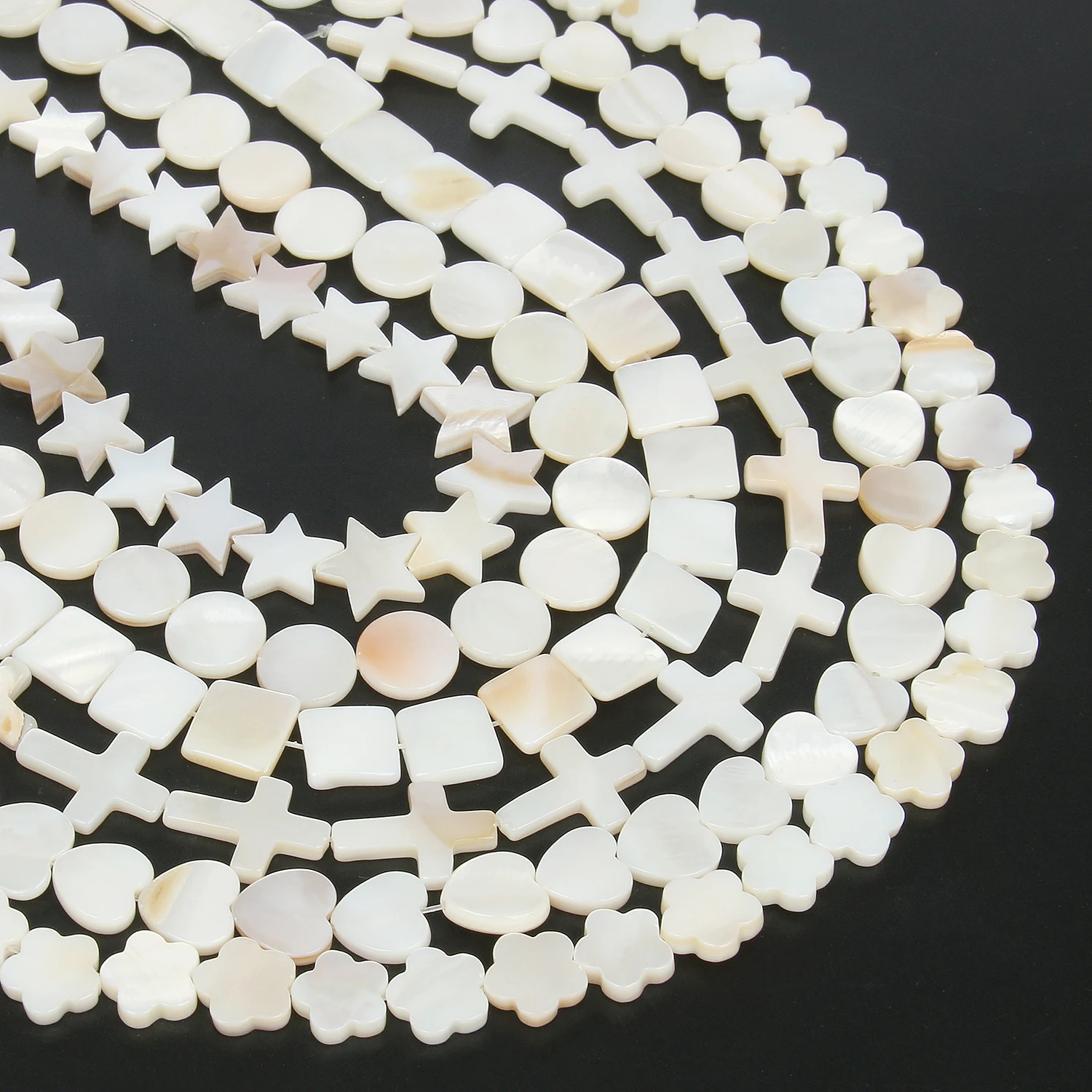 Жемчужные бусины в форме сердца, круглых цветов, звезд, ракушек, бусины из натуральных пресноводных ракушек, браслет, ожерелье 15 дюймов