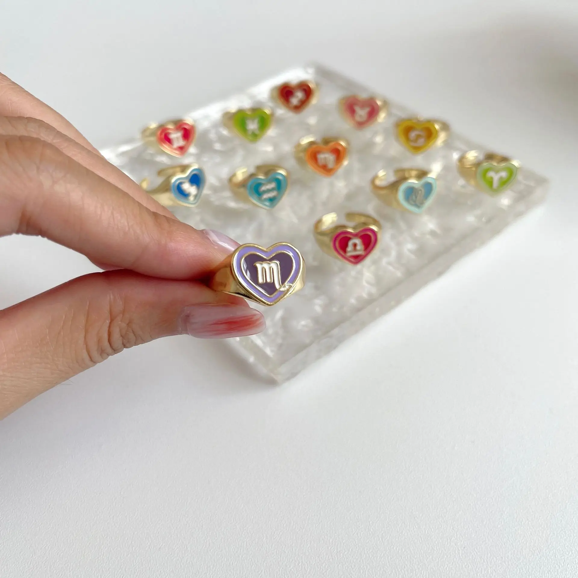 Ingemark Y2K Радужное сердце 12 созвездий зодиакальные кольца для ж...