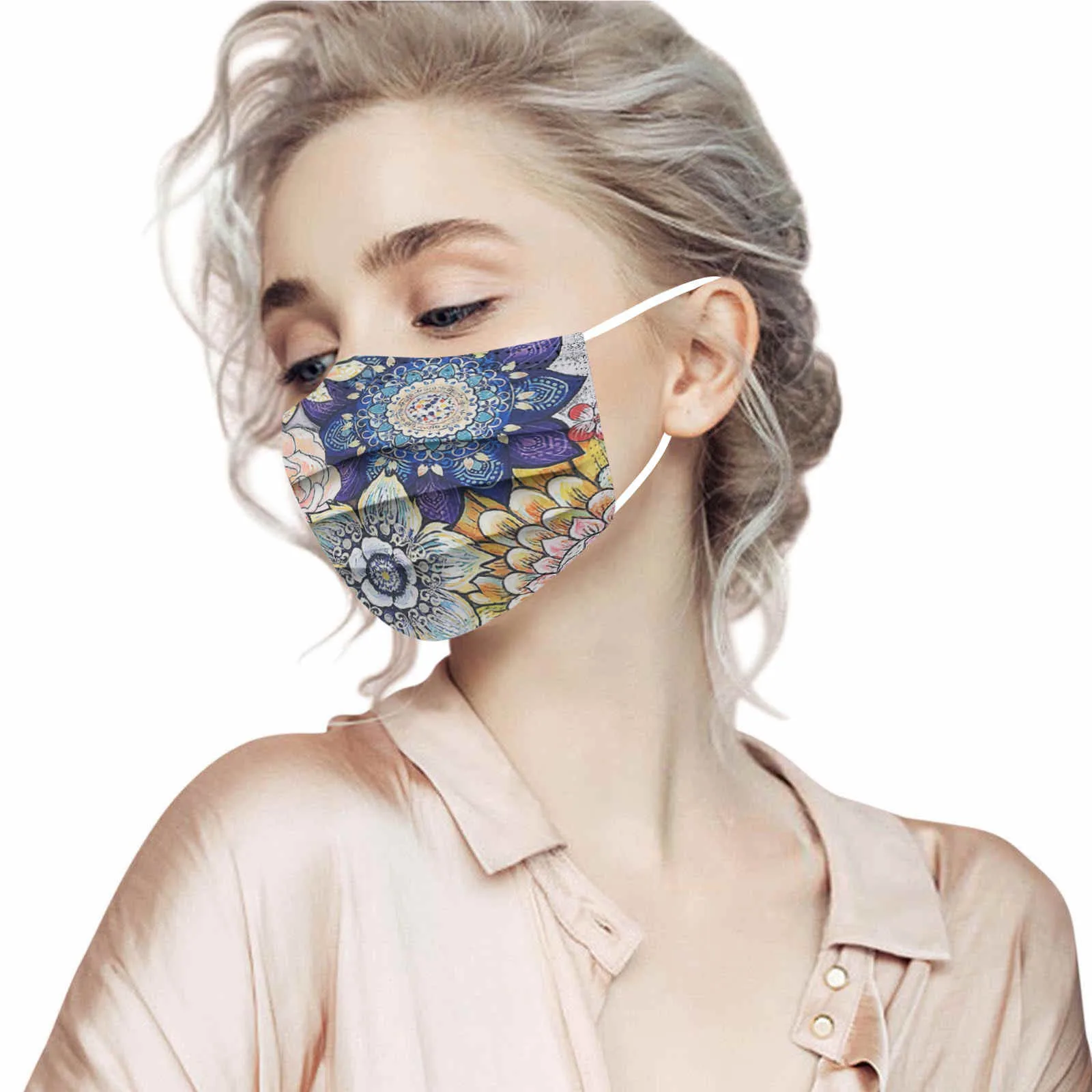 Маска одноразовая с цветочным принтом для взрослых, дышащая 3-слойн...