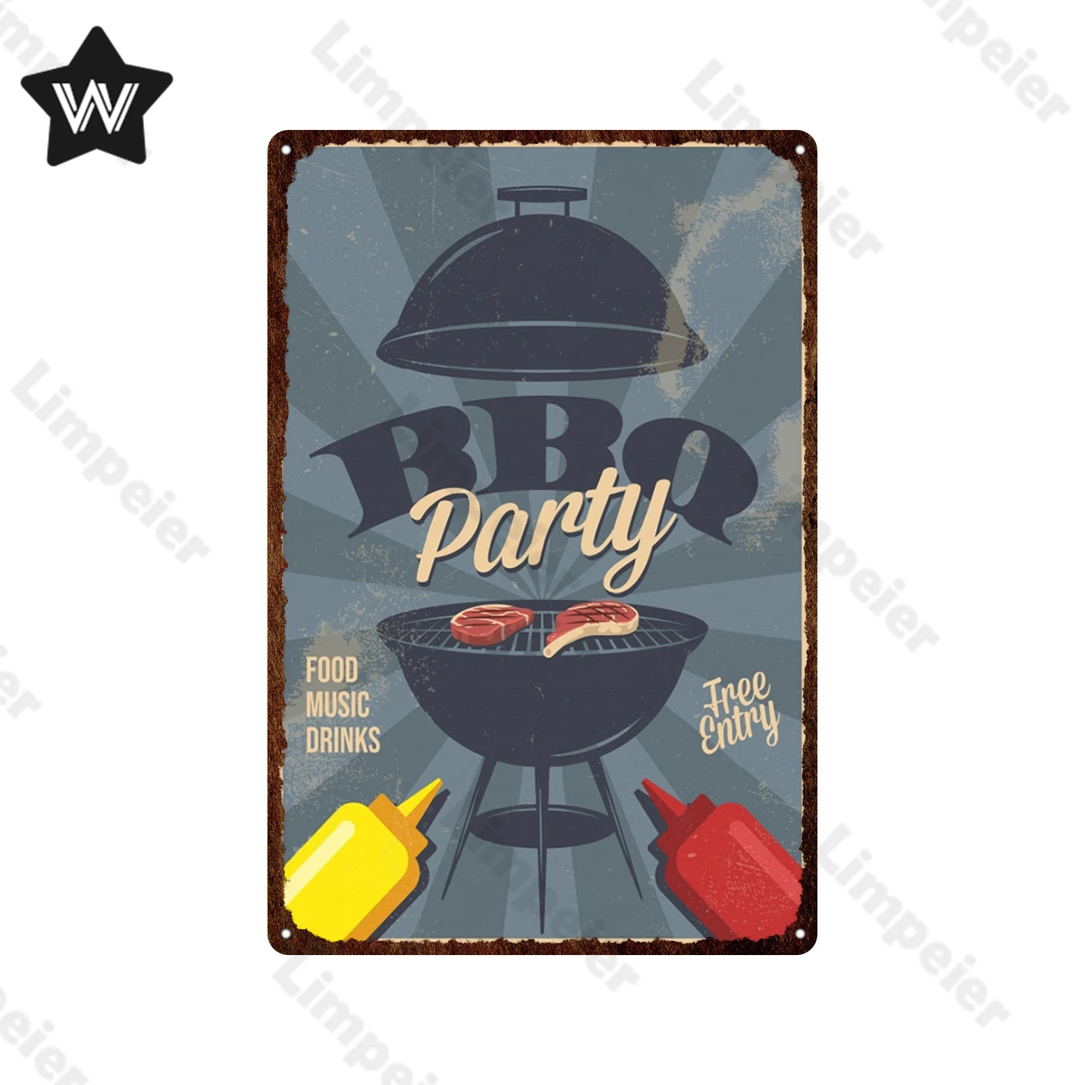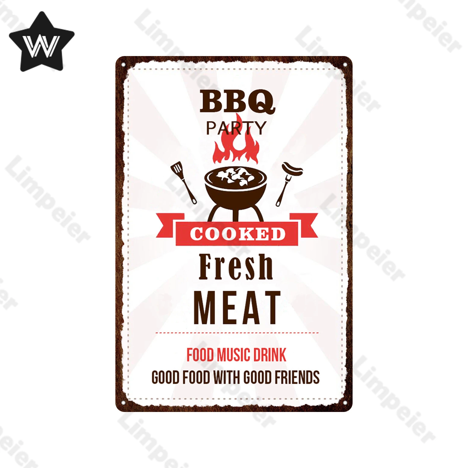 Металлический жестяной знак для барбекю, настенные наклейки для рес...