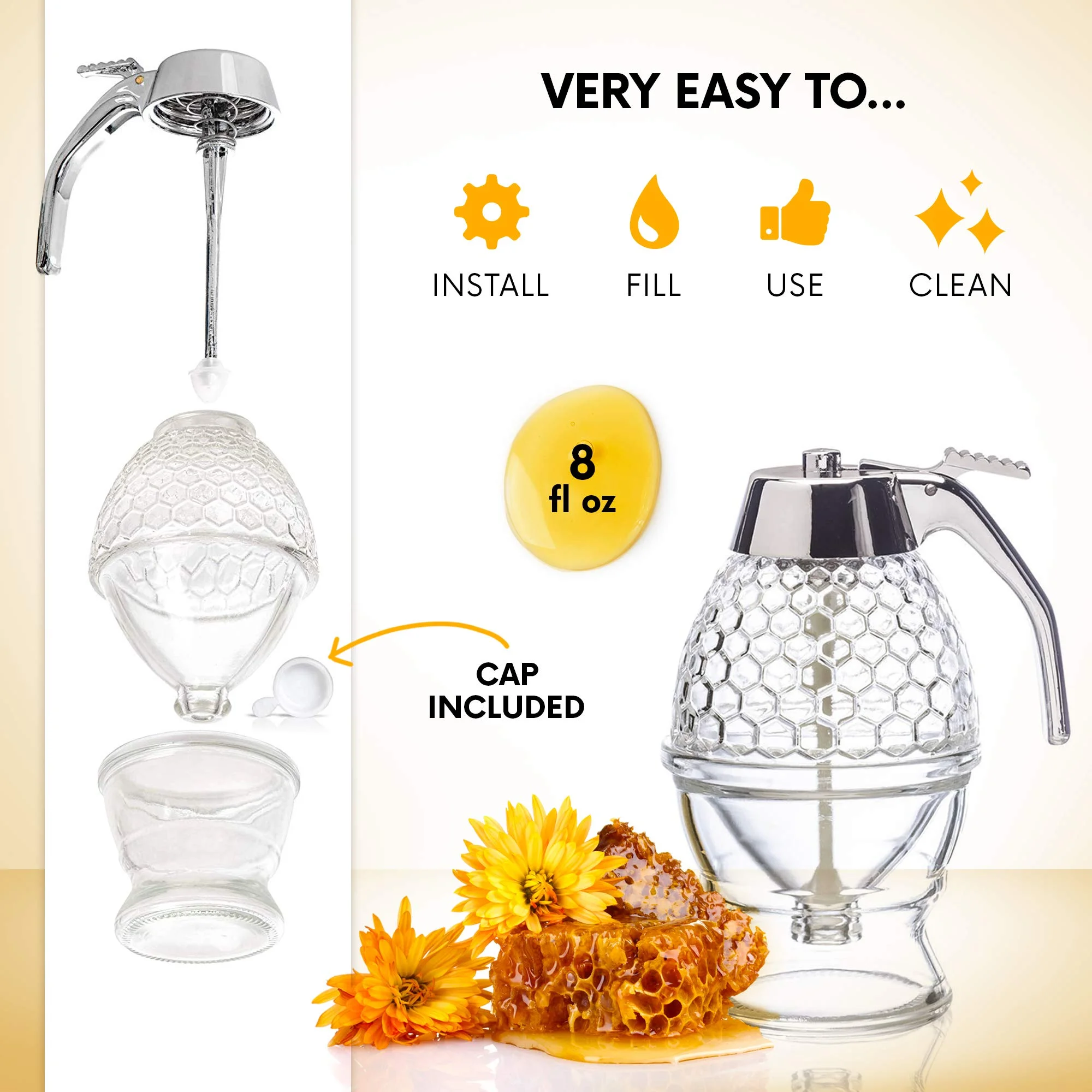 Отлично подходит для обслуживания и легко заправляется-Емкость контейнера составляет 1 стакан (8 унций) меда, кленового сиропа, шоколадного сиропа, сахара или любой другой аналогичной жидкости или повязки, которую вы хотите; если он струящийся и не толстый!