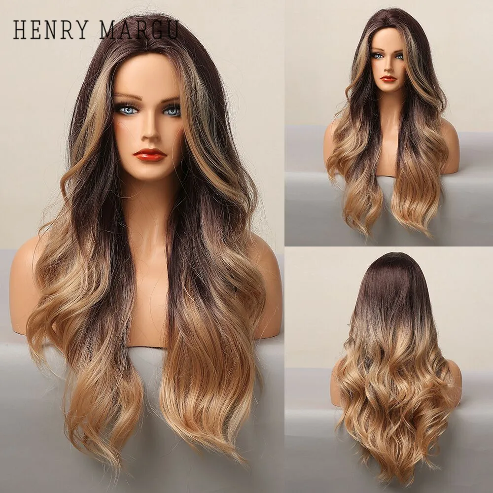 Длинные волнистые синтетические парики HENRY MARGU, медные красные коричневые волнистые натуральные волосы для женщин, Повседневные Вечерние термостойкие парики для косплея