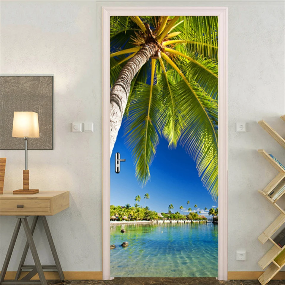 Наклейки на дверь с природным ландшафтом, украшение для входной спальни, для мальчиков и девочек, 3d обои, бамбуковый лес, самоклеящийся домашний плакат