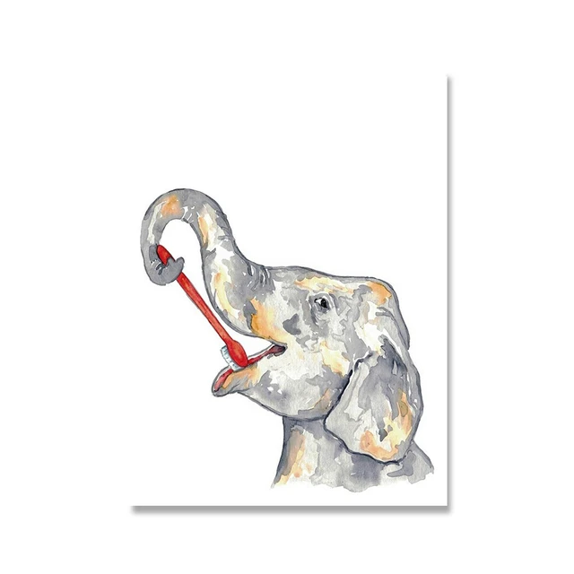Плакат на холсте с мультяшными животными для чистки зубов в туалете, Настенная картина в стиле ретро для ванной, детской комнаты, художественное украшение на стену