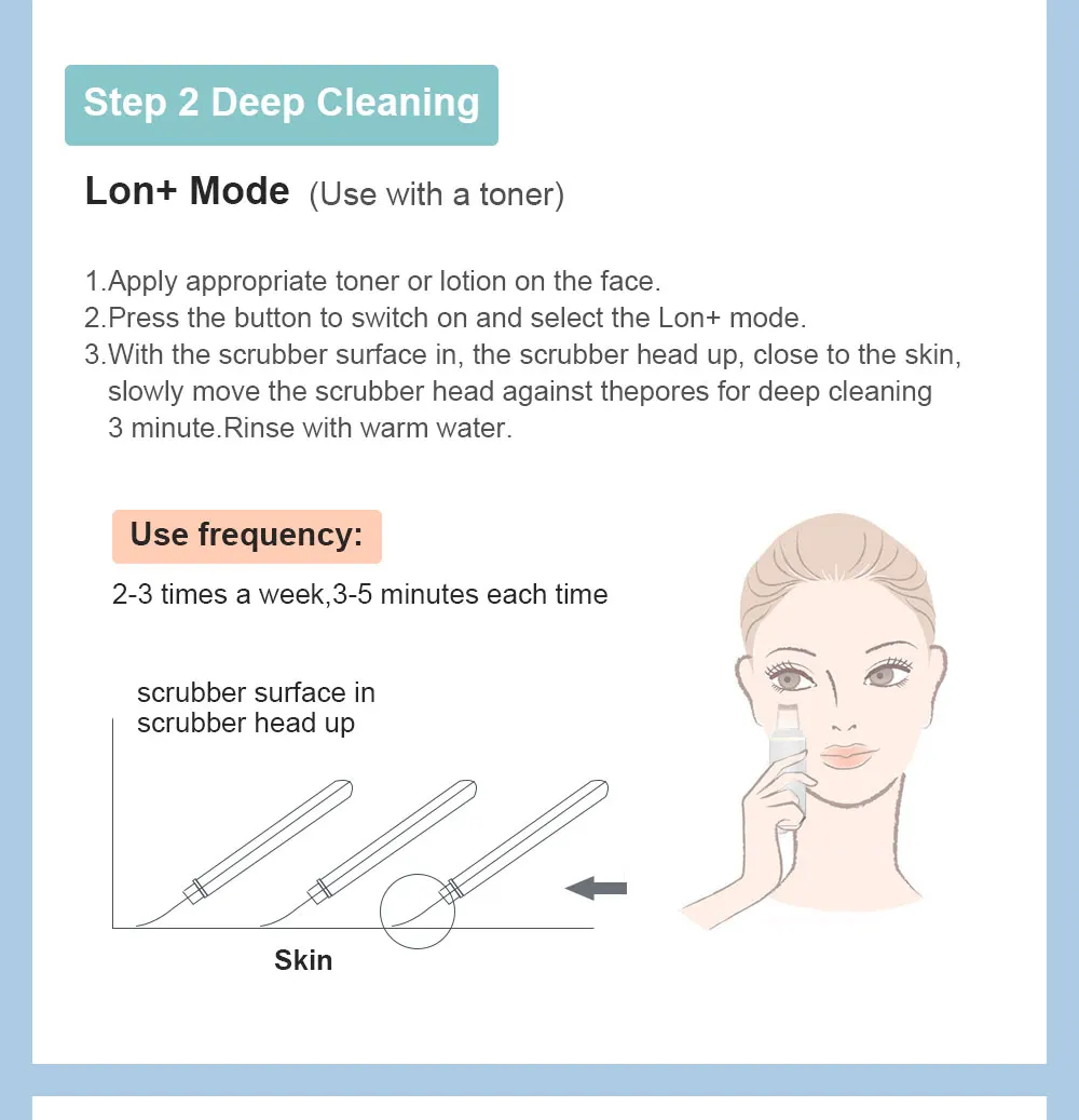 [Прибор для очистки кожи лица] прибор для очистки кожи лица использует высокочастотную вибрацию для глубокой очистки кожи. Помогает мягко отшелушивать, очищать угри, акне, омертвевшую кожу, масло и грязь для лица. [4 режима можно регулировать] чистка: высокочастотная вибрация глубоко очищает кожу, оставляя кожу чистой и свежей. Лифтинг: помогает уменьшить морщины и тонкие линии, поднимать и подтягивать кожу и восстанавливать жизненную силу кожи. Ion +: помогает удалять черные точки лица, омертвевшую кожу, жир и грязь. Ион-: помогает коже быстро поглощать питательные вещества в продуктах по уходу за кожей. (Примечание: При использовании следует медленно перемещать голову по лицу.) [Безопасный и простой в использовании] Нажмите кнопку питания в течение 31 секунды, чтобы запустить машину. После включения устройства Нажмите кнопку питания, чтобы переключить режим работы. [Напоминание] Используйте крем или пар для увлажнения лица перед использованием. [Лучший подарок] скребок изготовлен из нержавеющей стали и безопасен в использовании. Маленький и легко носить с собой. Его можно заряжать через предоставленный usb-кабель через ПК, мобильный источник питания и т. д. очень удобно использовать, это лучший подарок для влюбленных или друзей и защитить их кожу