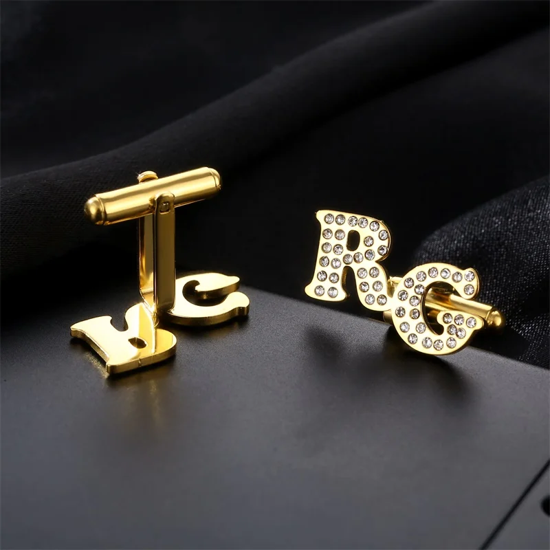 Запонки с буквами из нержавеющей стали с цирконом на заказ, Запонки с инициалами, мужские запонки для рубашки, пуговицы с персонализированным именем, ювелирные манжеты