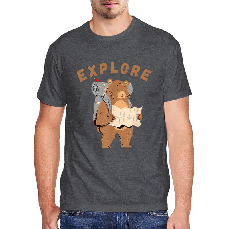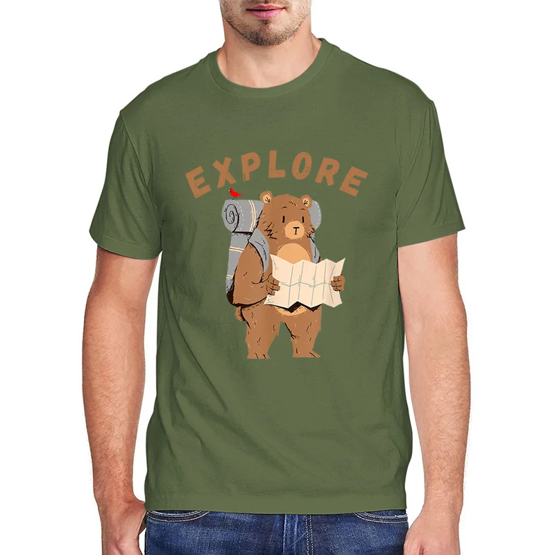 Новый дизайн, мужские винтажные рубашки с коротким рукавом, с изображением медведя, пешего туризма, с картой, большие мужские футболки с круглым вырезом