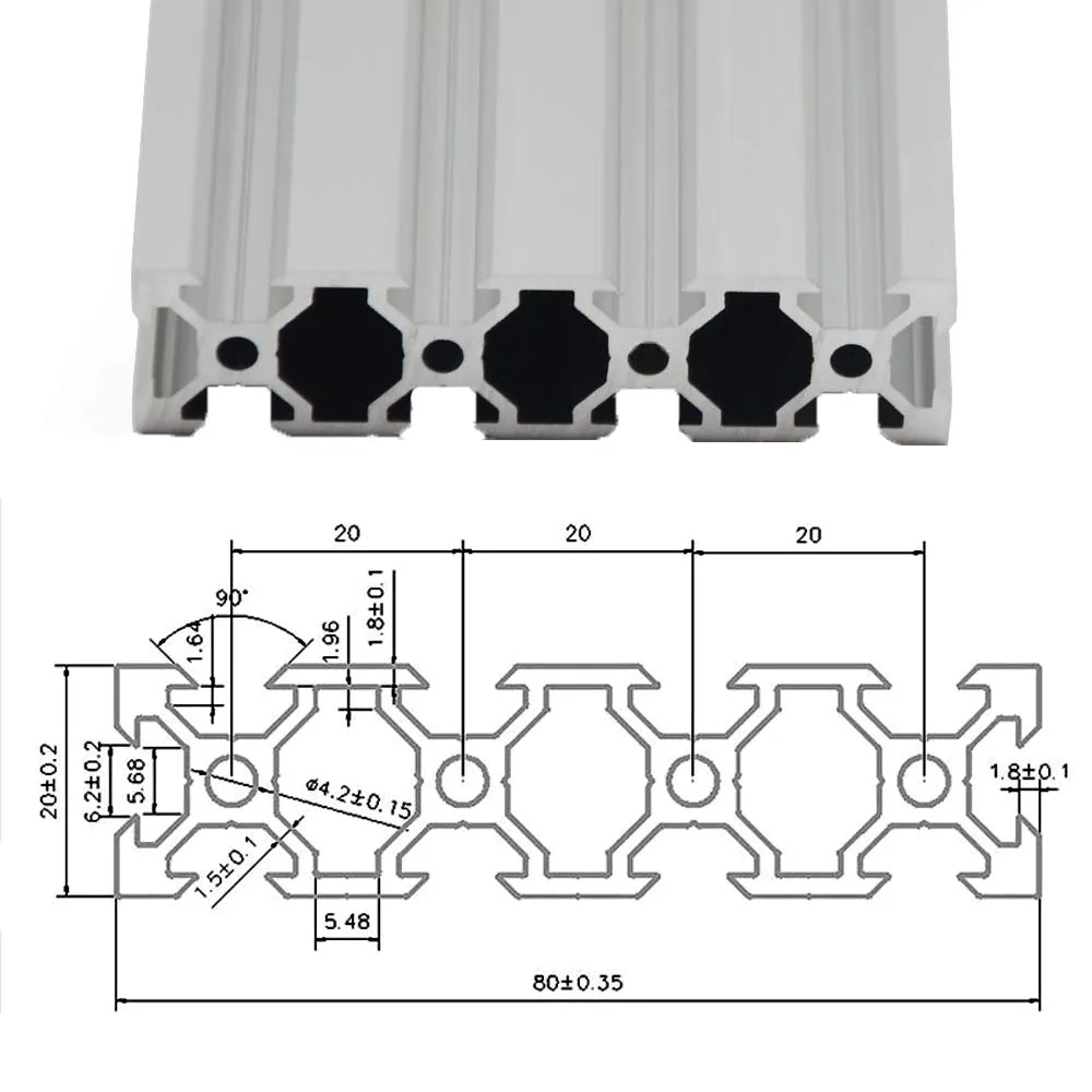 1 шт., серебристые алюминиевые экструзии 2080 V-Slot 20x8 0 мм, рамка для экструзии алюминиевого профиля