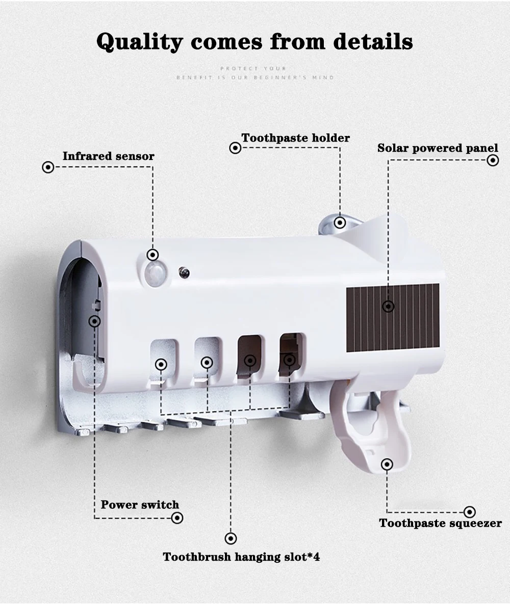 Features 1Solar Energy UV Toothbrush Holder