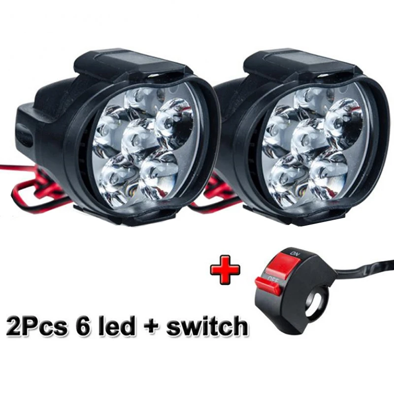2 шт., 6 светодиодов, вспомогательный головной свет для мотоцикла, ...