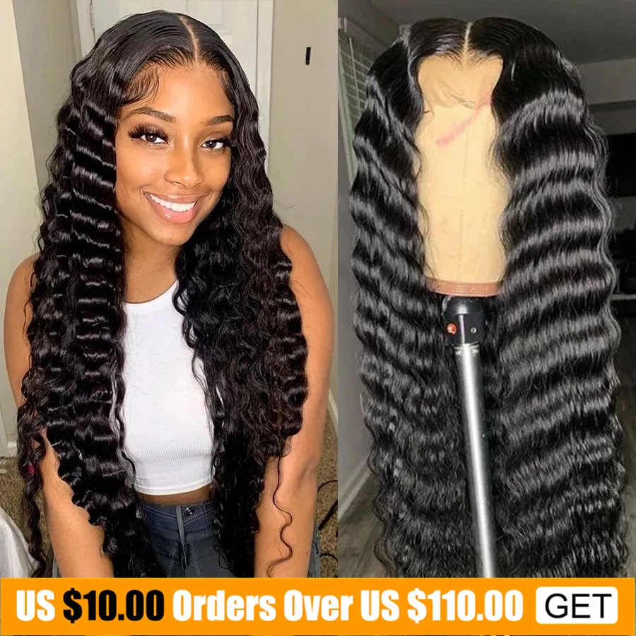30 дюймов, малазийский, свободный, глубокий волнистый парик, т часть, кружево спереди, человеческие волосы, парики для черных женщин, плотность 180, 4x4, кудрявый парик с кружевной застежкой