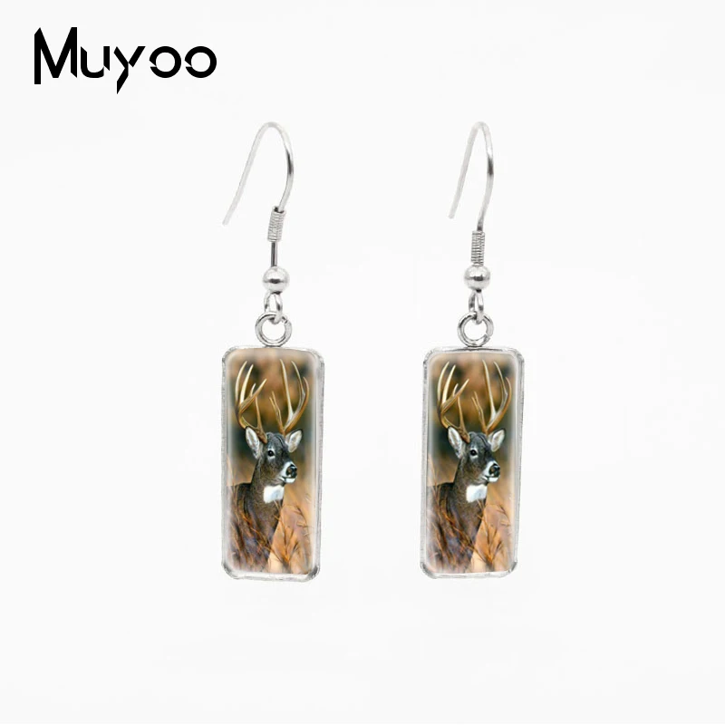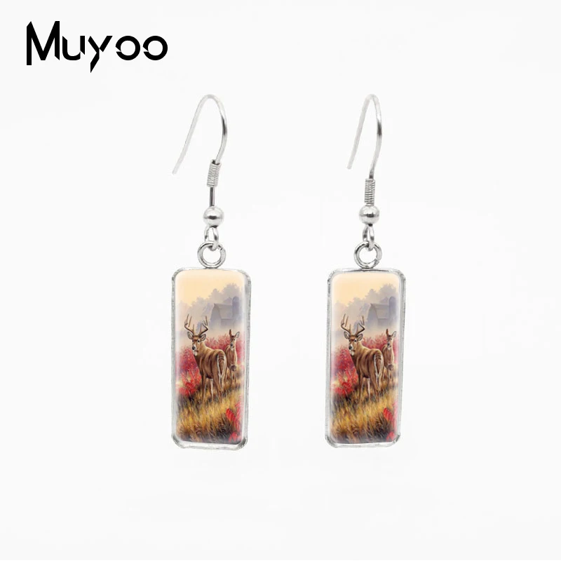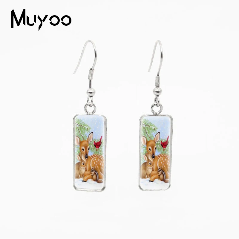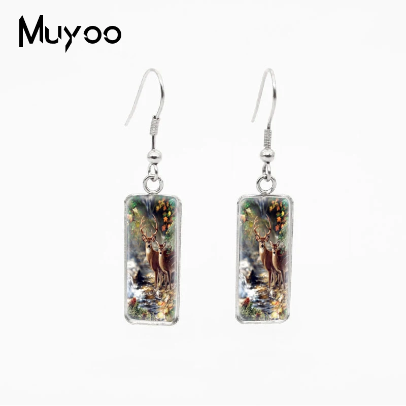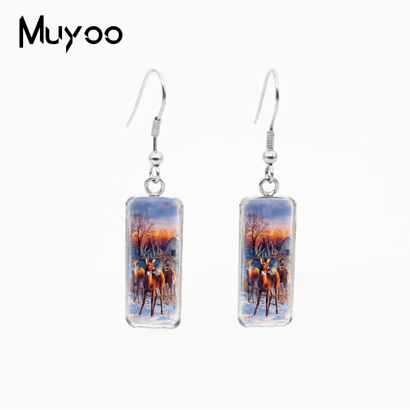 2021 Новые Зимние Животные дикой природы олень Сика олени картины ландшафта ручная работа Прямоугольный Стеклянный кабошон рыба крючок серьги