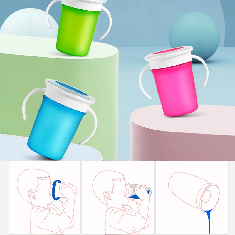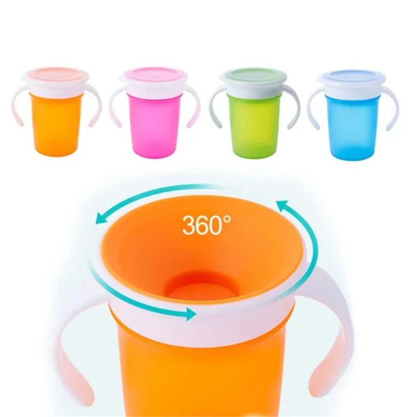 Герметичная Поворотная на 360 градусов детская чашка для питья с двойной ручкой, детские чашки для воды с крышкой 220 мл без БФА