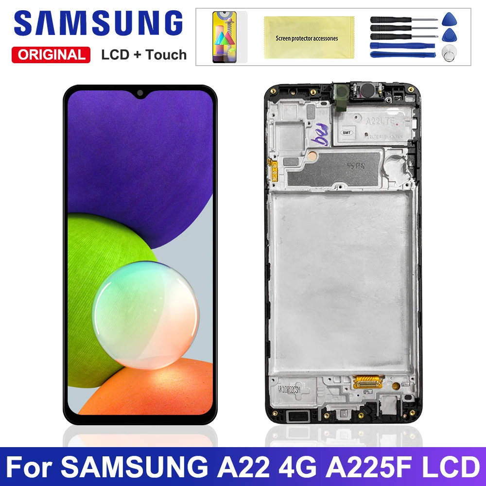 Оригинальный дисплей для Samsung Galaxy A22 4G, ЖК-дисплей, сенсорный экран, дигитайзер в сборе, Запчасти для Samsung A225 A225F A225FDS