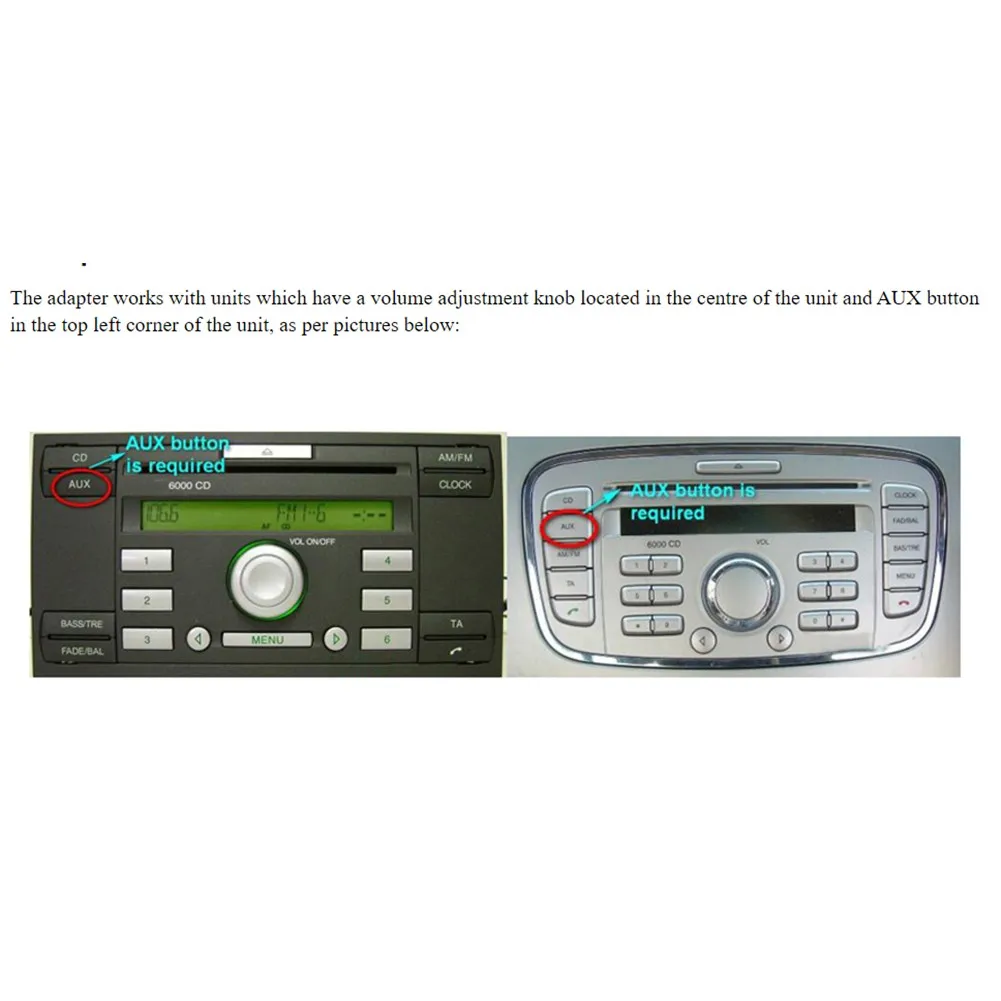 Это адаптер AUX in для Ford 5000 CD, 6000 CD, 6006 CDC, а также CDXF214 заводские установки CD / radio.