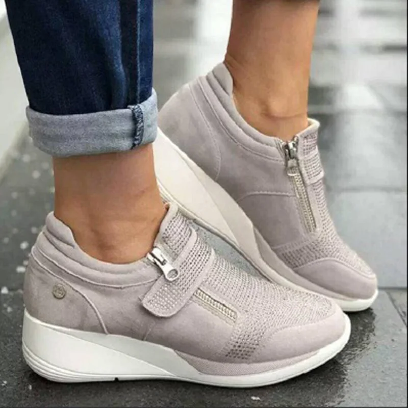 Женские кроссовки без шнуровки, сетчатые дышащие, Вулканизированная...
