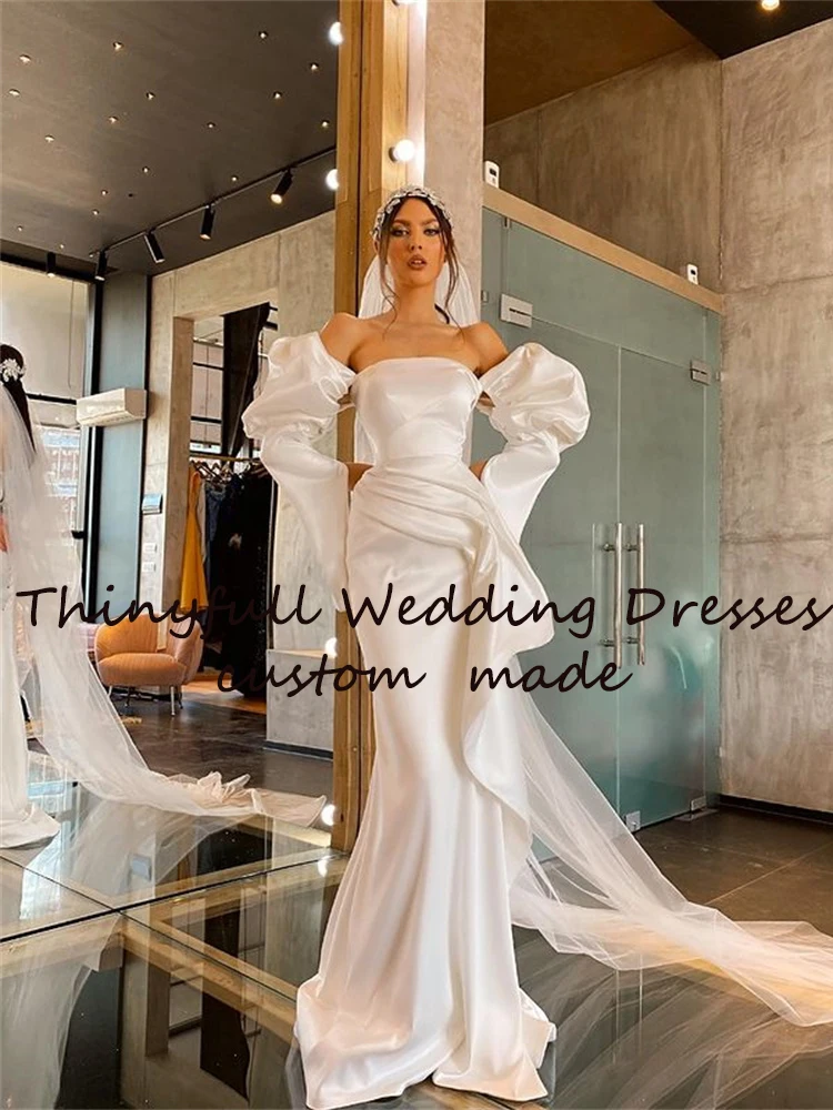 Thinyfull, Длинные свадебные платья с высоким разрезом, мермид, женские пляжные платья принцессы без бретелек для невесты