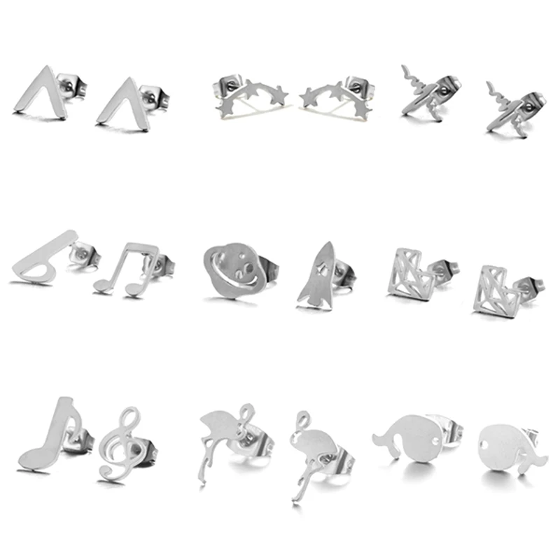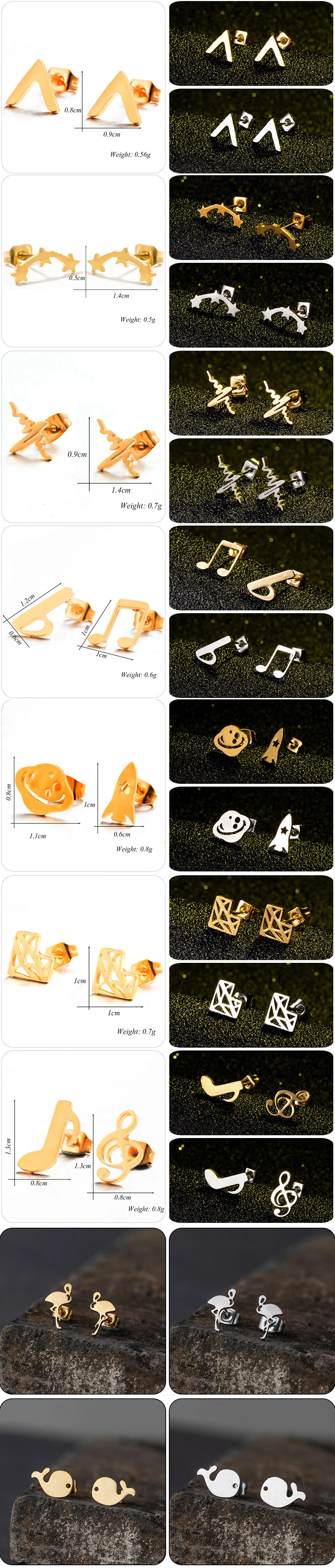 Женские минималистичные серьги-гвоздики из нержавеющей стали, милые Креативные серьги в виде животных, растений, гвоздики, украшения, аксессуары