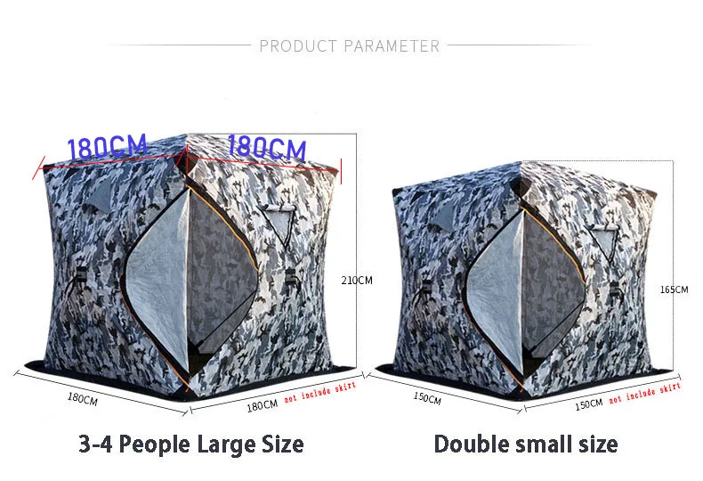 Большая утолщенная трехслойная палатка для зимней подледной рыбалки из хлопка, водонепроницаемая ветрозащитная палатка для кемпинга и рыбалки с защитой от снега