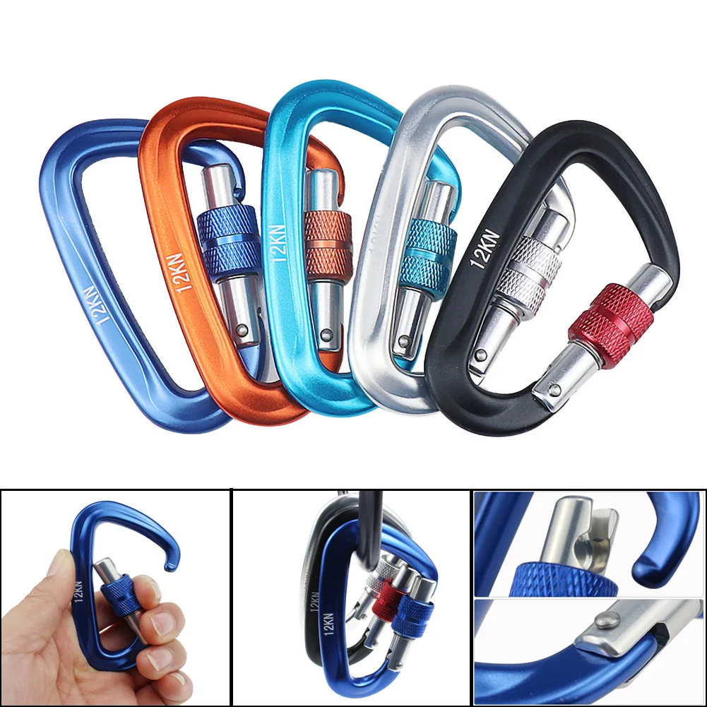 12KN Профессиональный альпинистский Карабин D-образной формы, авиационный алюминиевый замок безопасности, наружное альпинистское оборудование