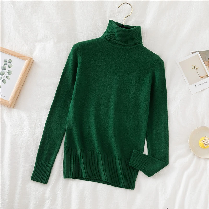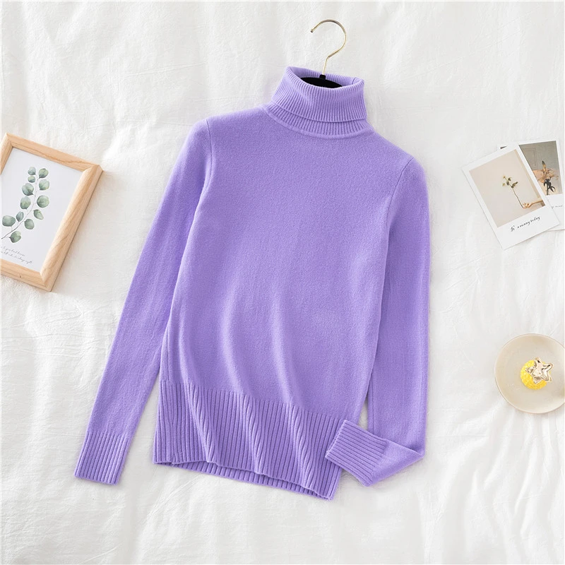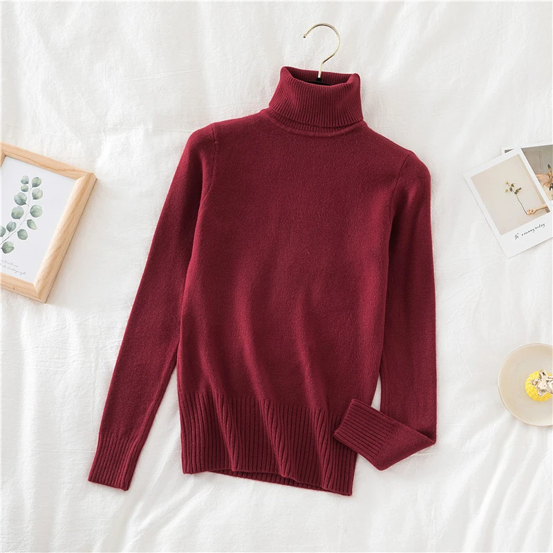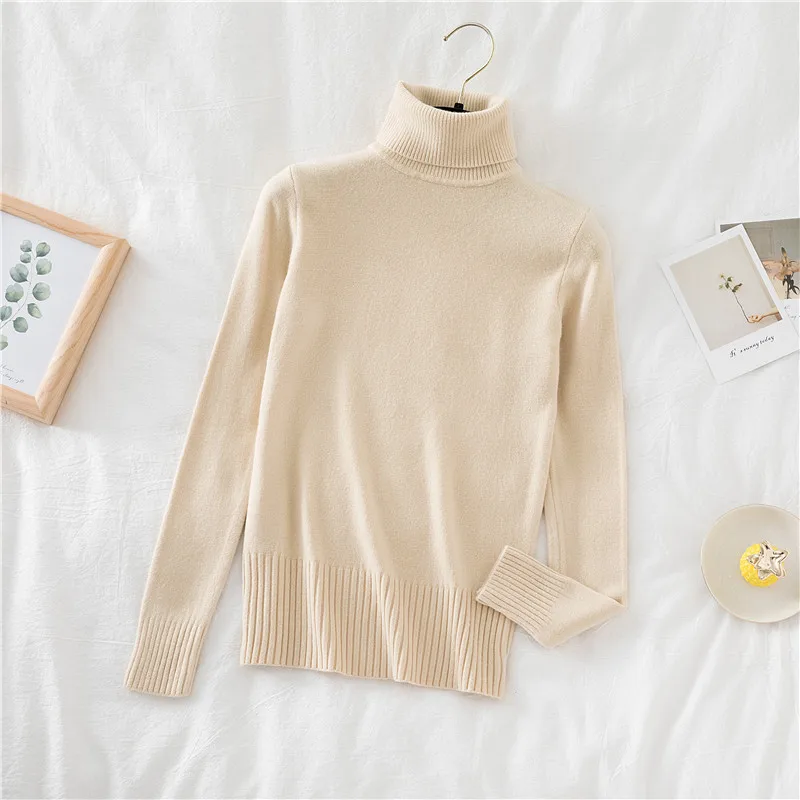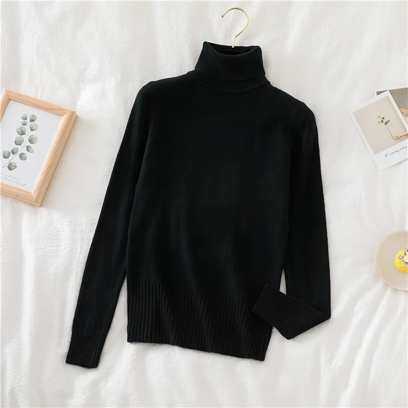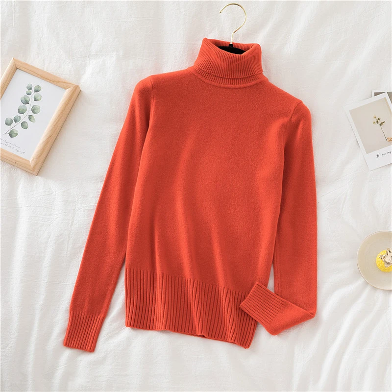 Женский свитер с высоким воротником, зимняя Корейская Повседневная Уличная одежда, однотонные пуловеры, топы, женская элегантная вязаная одежда