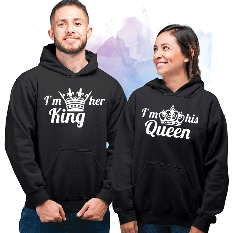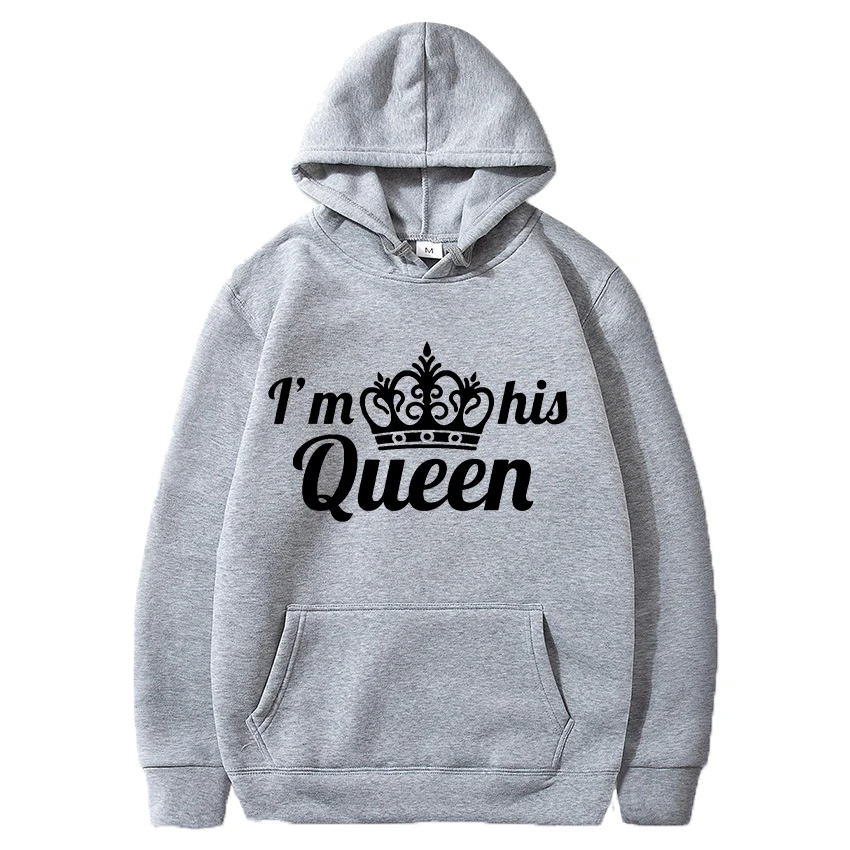 Мужская толстовка с капюшоном I'm Hisher King или Queen, с принтом короны, осенне-зимняя уличная одежда, Повседневный пуловер для влюбленных, толстовки
