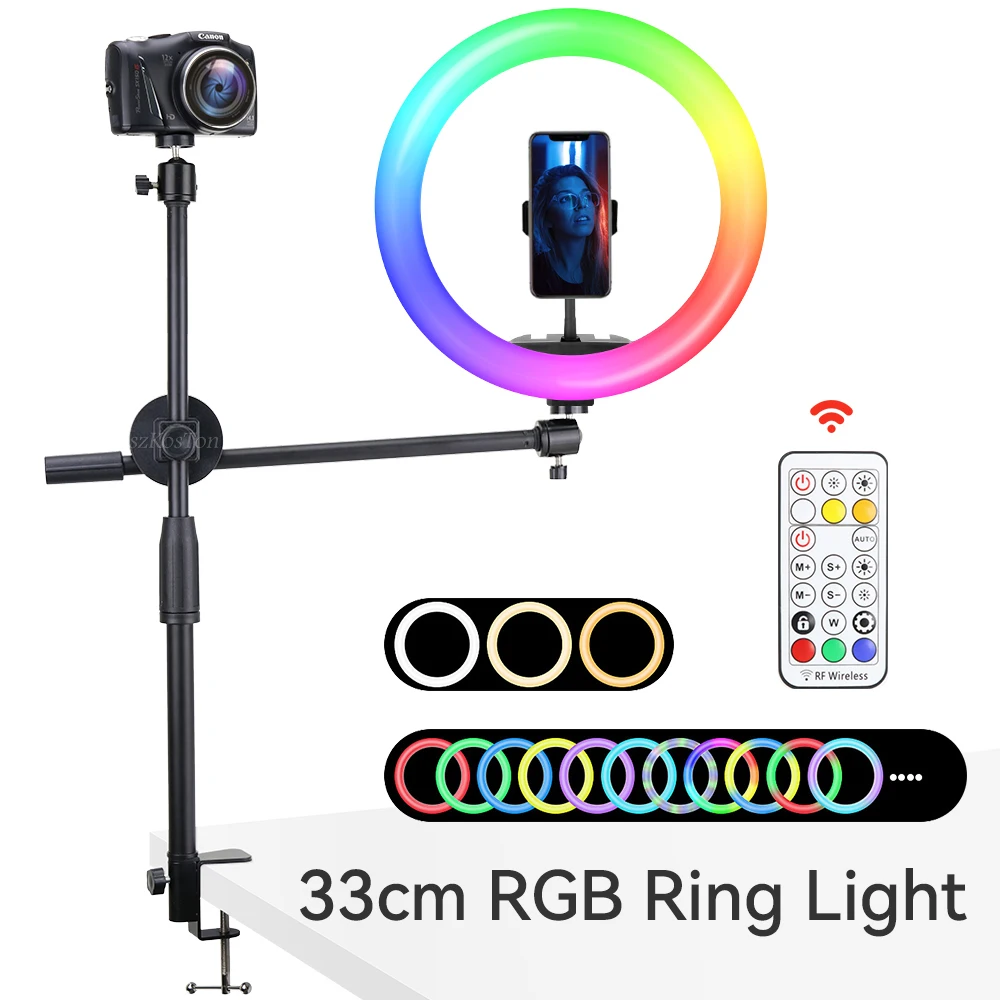 Светодиодный светильник для видеосъемки с регулируемой яркостью, 26 см, 33 см, 10 дюймов, со стандартным зажимом и винтом 14, для камеры, телефона, видео, прямого эфира