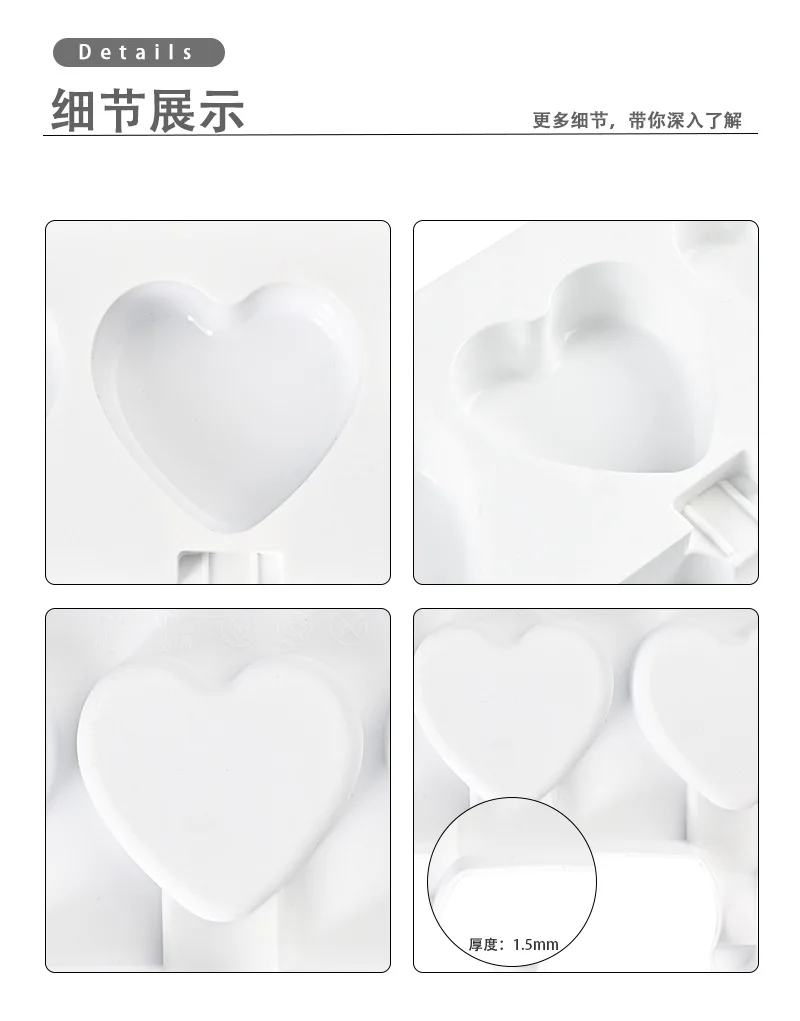 Силиконовая форма для мороженого в форме сердца с 34 отверстиями, силиконовая форма для льда в полоску, многоразовая форма для мороженого