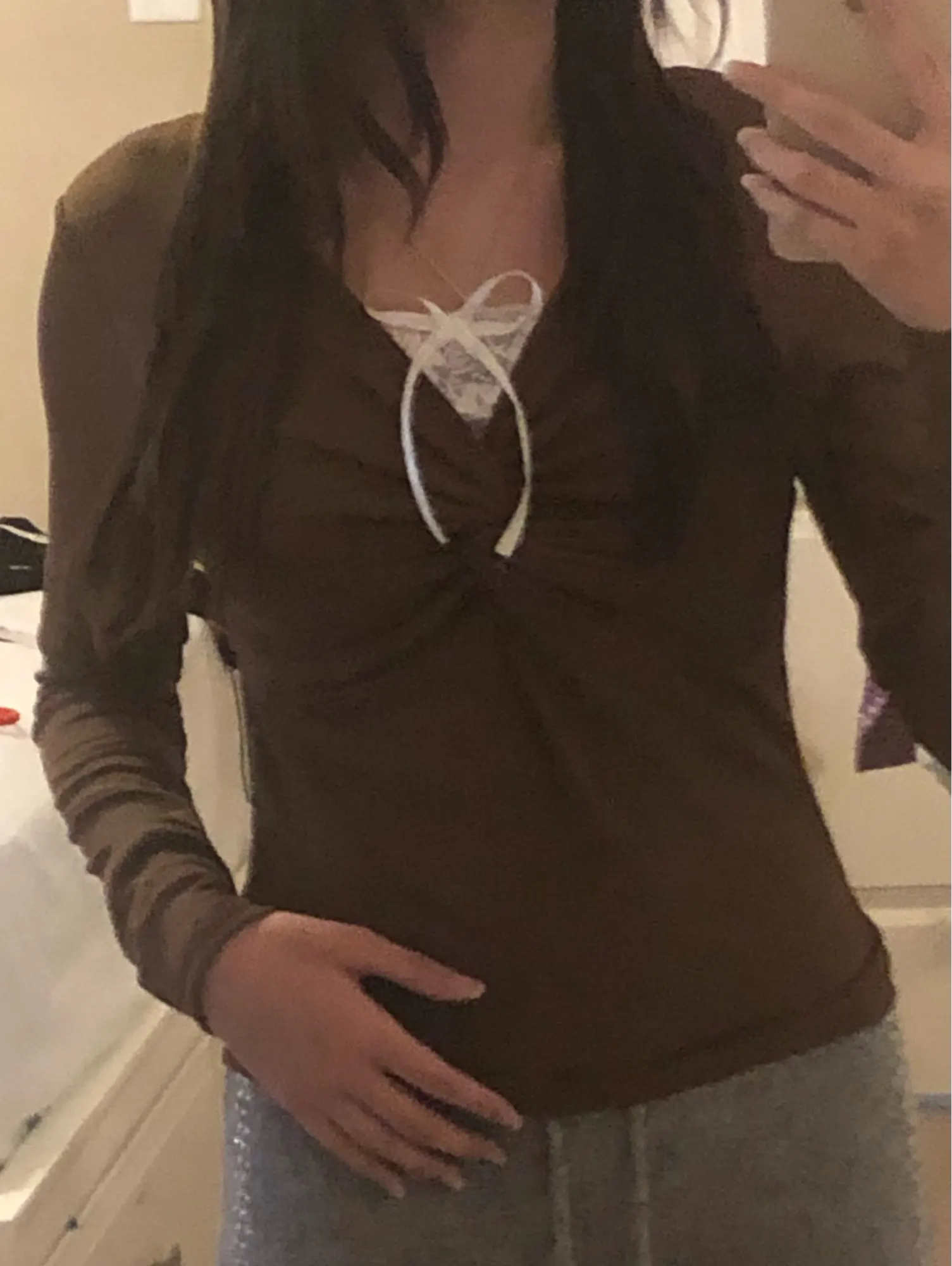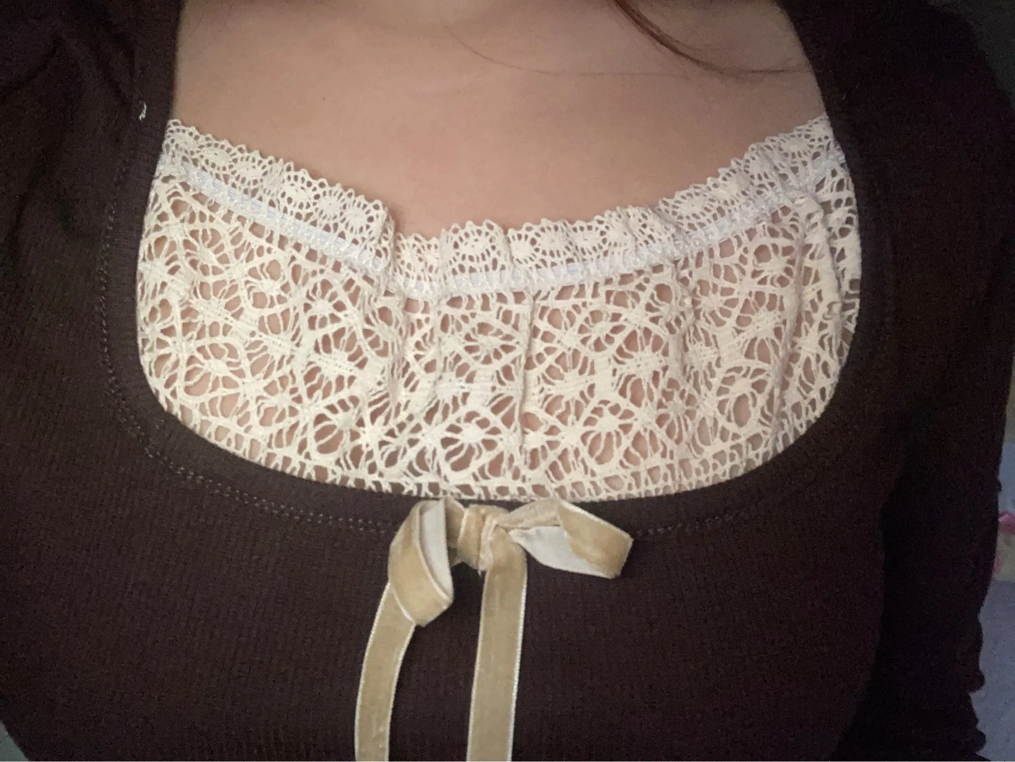 Я очень благодарен за этот топ, так как теперь это моя любимая вещь! Коричневый идеально сочетается с «гранж» или «земляные тона», белый цвет может дополнять юбку или переворачивать платья. Однако имейте в виду, что часть рубашки с рюшами и кружевом может уменьшаться при стирке и никогда больше не сглаживать; Даже при глажке. Я приложил несколько фотографий с написанным отзывом, если это поможет кому-то заинтересоваться. Коричневый верх также имеет бархатный бант, так как фотографии товара не совсем соответствуют действительности.