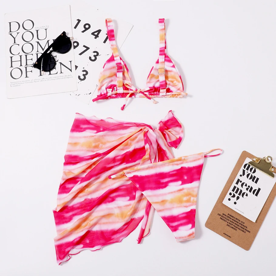 2021 женский купальник из трех частей, сетчатый купальник с леопард...