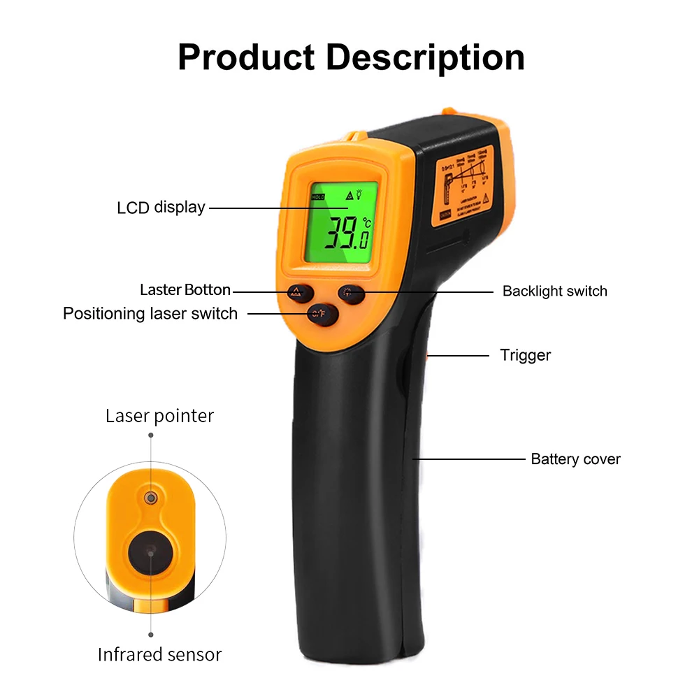 Цифровой инфракрасный термометр, лазерный Бесконтактный измеритель температуры и влажности с ЖК дисплеем