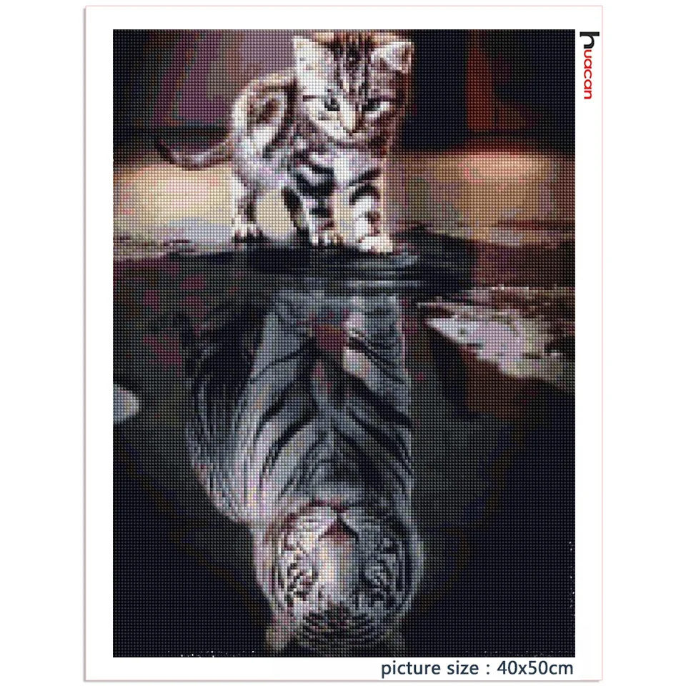 Набор для алмазной живописи Huacan, вышивка с кошкой, тигром, квадратнаякруглая мозаика, вышивка крестиком, фантазия, отражение животных, украшение для дома