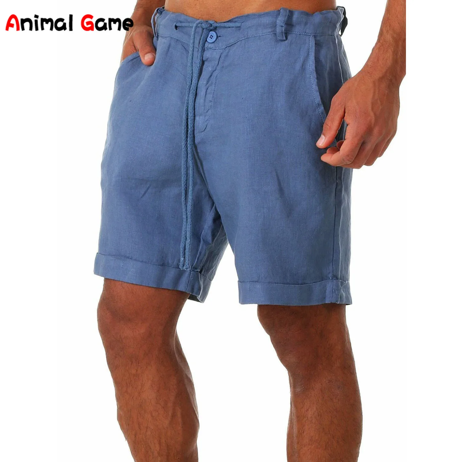 Шорты мужские повседневные льняные, модные однотонные короткие брюк...