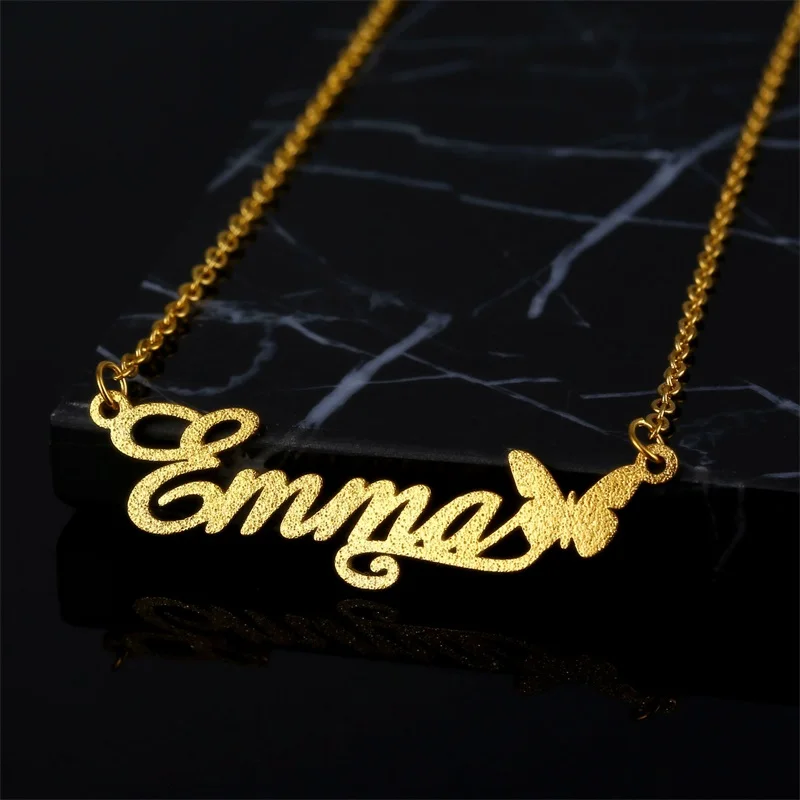 Индивидуальное матовое ожерелье из нержавеющей стали с именем, персонализированная подвеска в виде буквы золота, табличка с именем, подарок