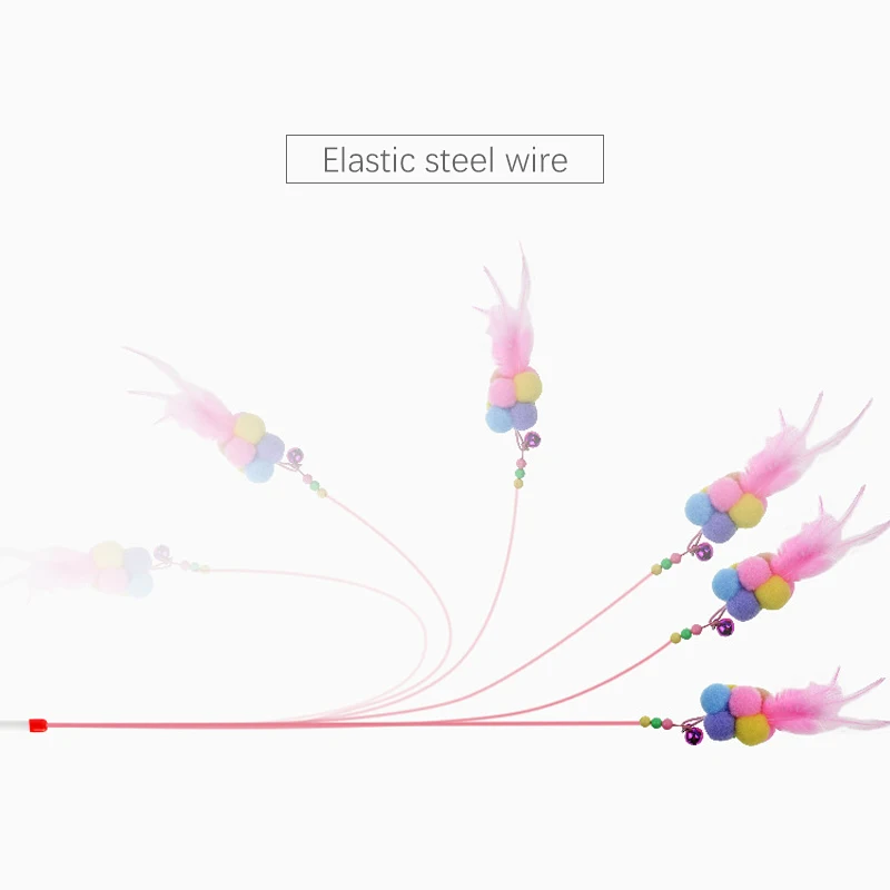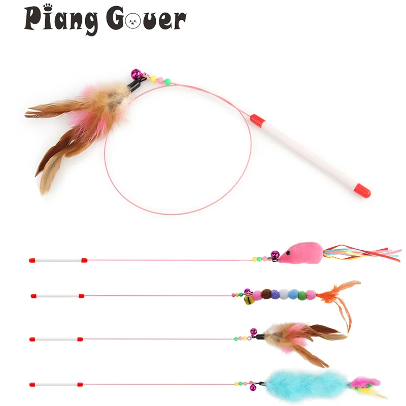 Стальная проволока дразнящая кошачьей палочка длинная рыба мячик-мышь перо с колокольчиком игрушки для домашних животных Интерактивная забавная игрушка для кошек палочка