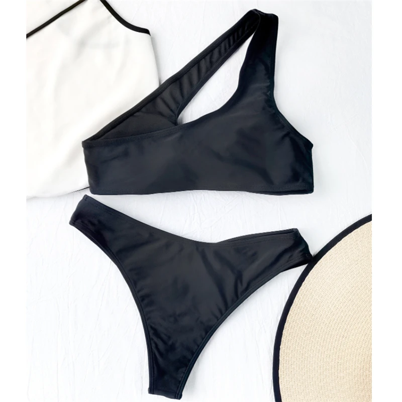 Сексуальный однотонный купальник-Бикини на одно плечо GNIM, Женский комплект из 2 предметов, лето 2022, пляжная одежда, женский купальный костюм, купальник с лямкой на шее, Новинка