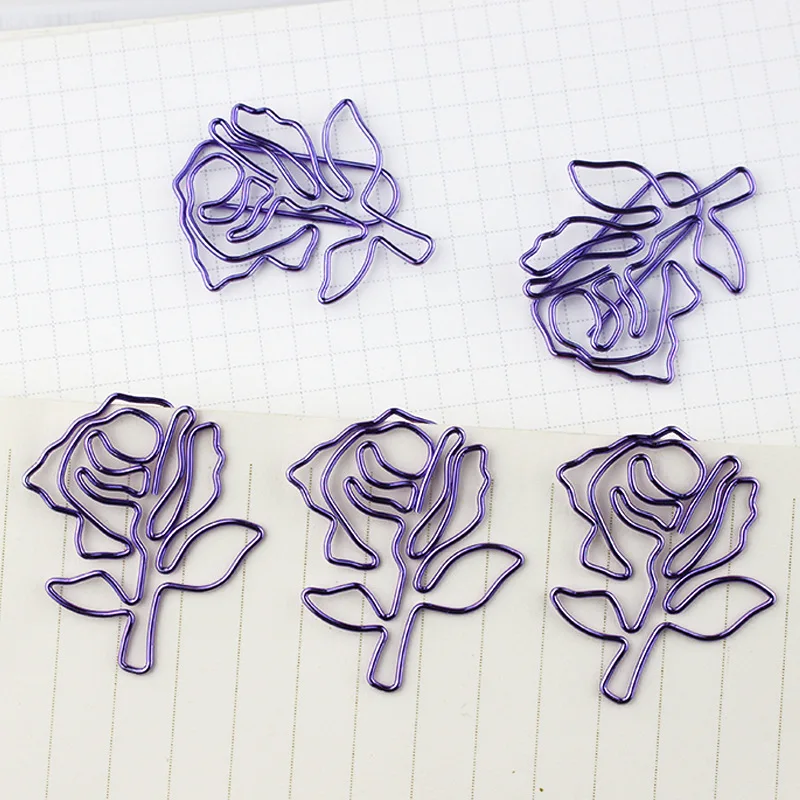 Новинка, 8 шт.коркор., моделирующая Закладка в форме фиолетовых роз, бумажная Закладка с металлическим покрытием, зажим для бумаги, принадлежности для школы и офиса