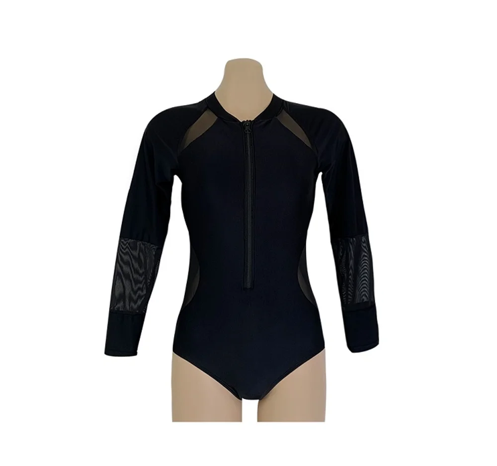 Женский сплошной купальник с длинным рукавом, сетчатый сплошной купальный костюм на молнии с высокой горловиной