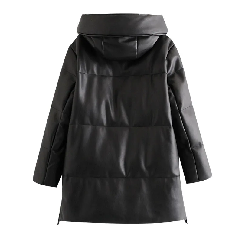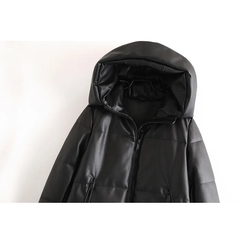 Женская зимняя мода 2021, толстые теплые парки из искусственной кожи, винтажная стеганая куртка с капюшоном и длинным рукавом, женское шикарное пальто