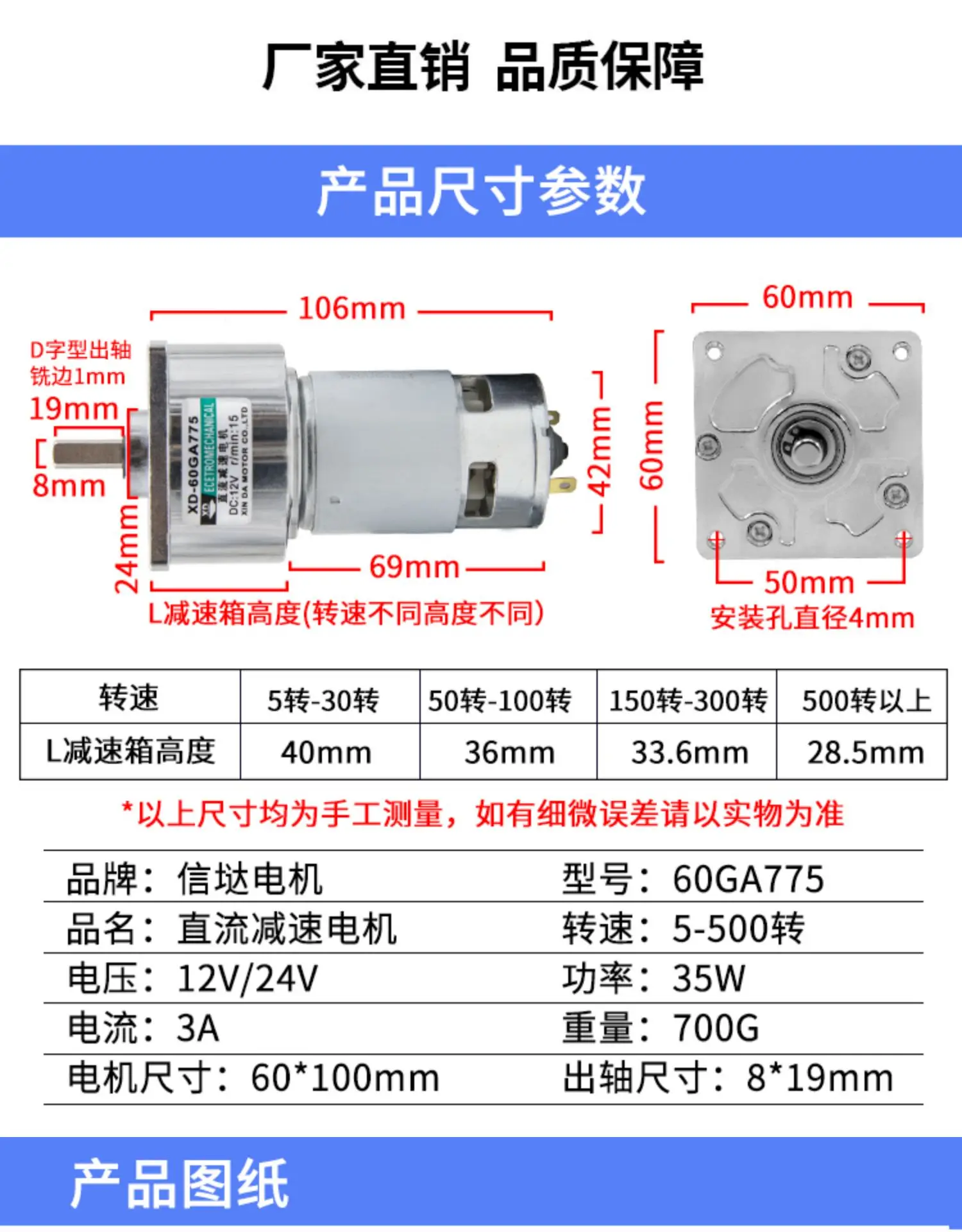 775 редукционный мотор DC12V24V миниатюрный пони 35W большой крутящий момент регулировка скорости двигателя медленный мотор