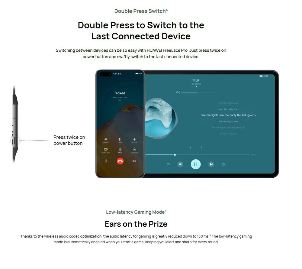 Оригинальные беспроводные наушники HUAWEI FreeLace Pro Bluetooth 5,0 с активным шумоподавлением, спортивные наушники с быстрой зарядкой