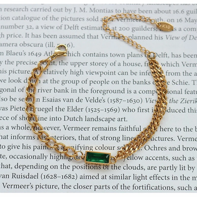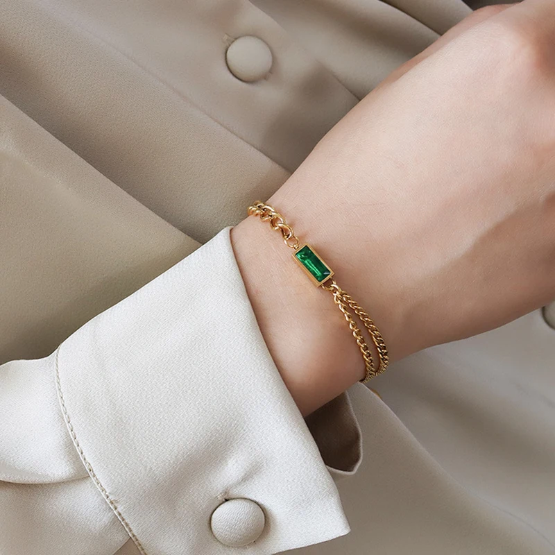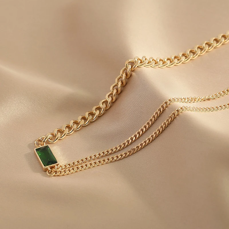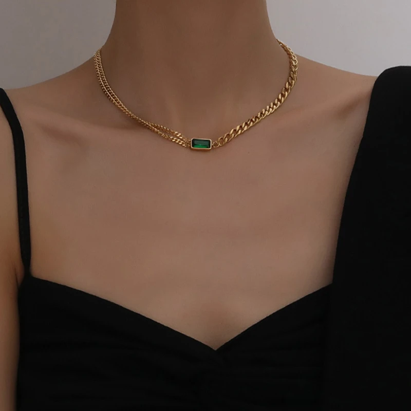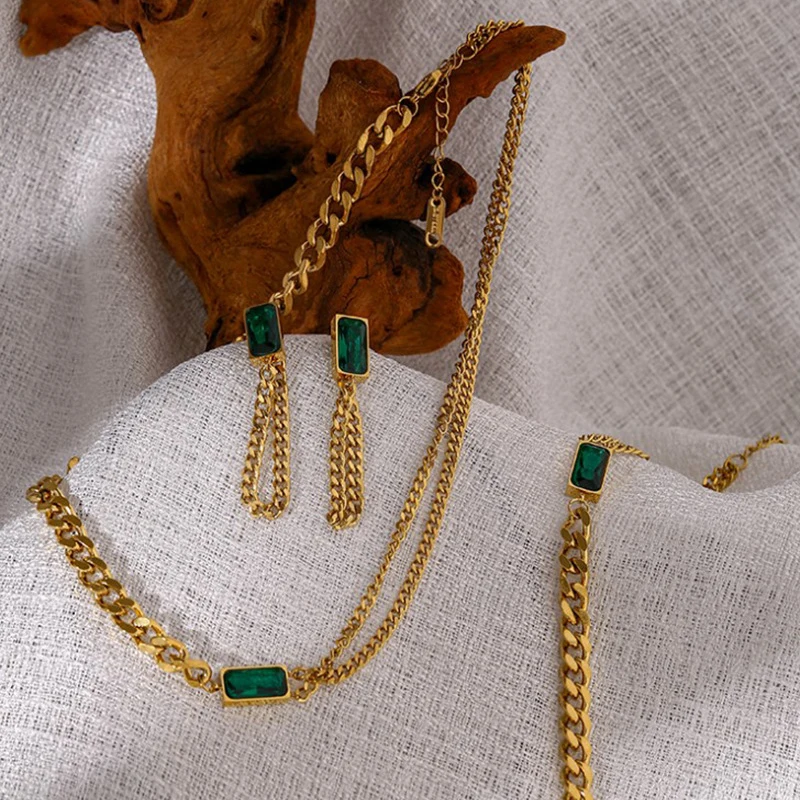 Винтажный Зеленый маленький квадратный Циркон сплайсинга титановая сталь кубинская цепочка ожерелье браслет серьги наборы женские аксессуары ювелирные изделия