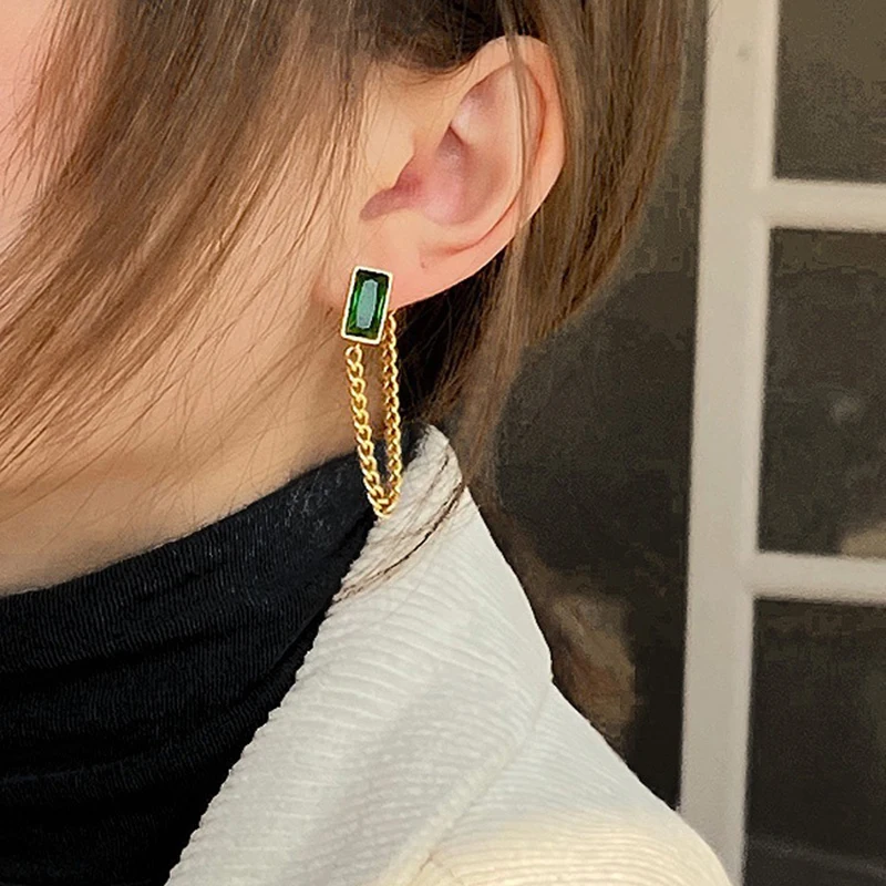 Классические геометрические прямоугольные зеленые стеклянные серьги...
