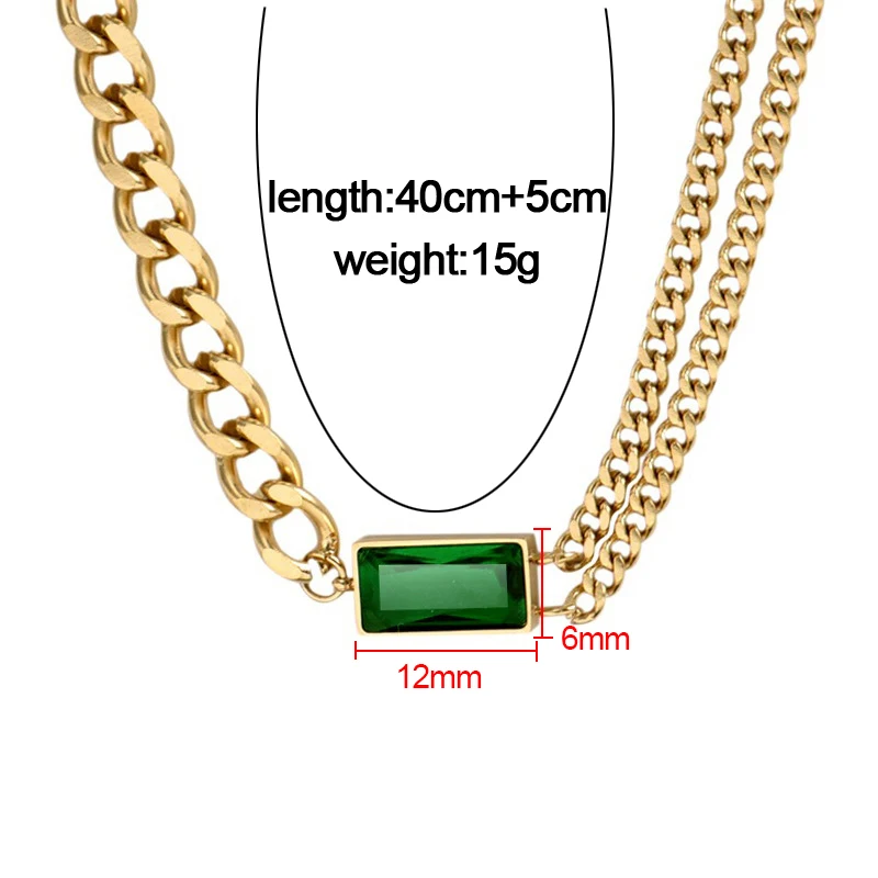 Тип изделия: зеленый маленький квадратный Циркон сплайсинга титановая сталь кубинская цепочка ожерелье браслет серьги наборы
