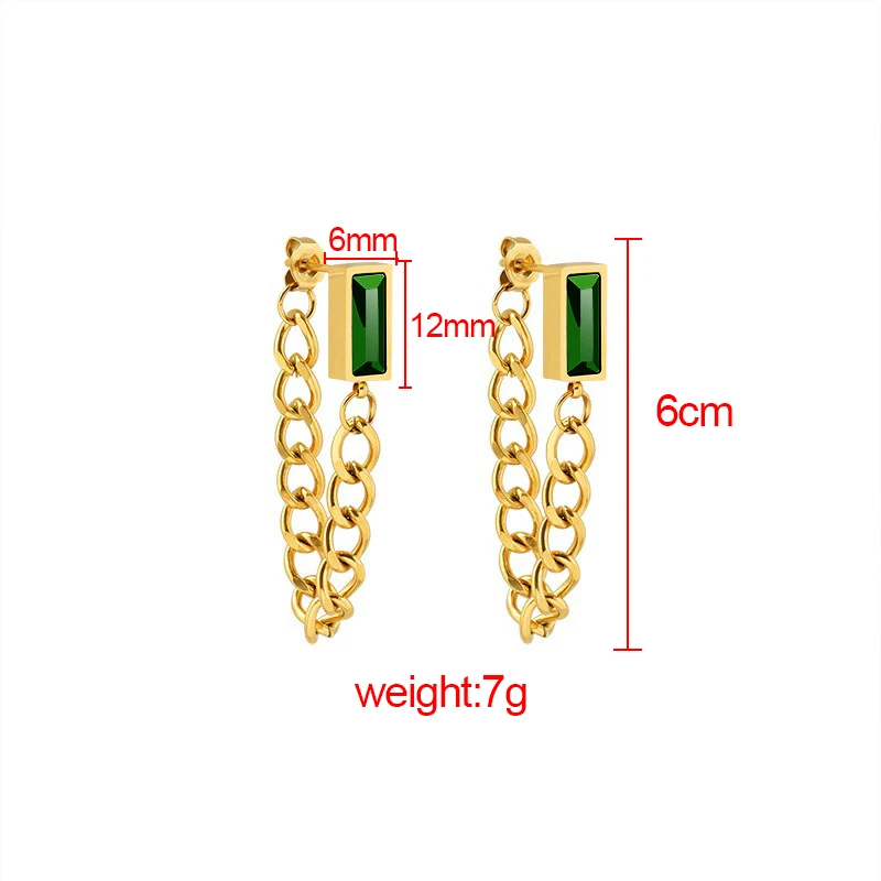 Женские серьги-подвески из нержавеющей стали с зеленым Цирконом